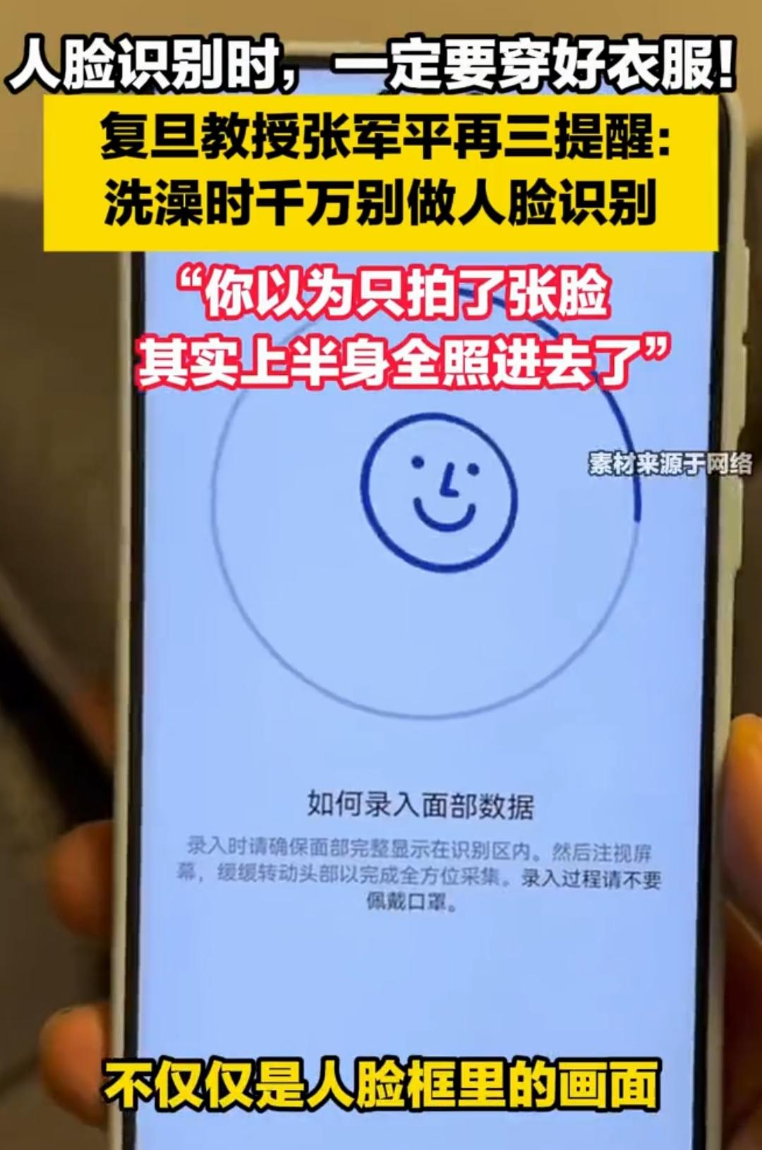 人脸验证时千万记得穿衣服,不然真的会社死! 提醒所有朋友,做人脸验证、刷脸认证的时候,一定要穿好衣服! 别嫌我啰嗦,这真的是血的教训! 最近刷到好几个离谱的新闻,有人在家偷懒,没穿衣服就躺着做人脸核验,结果系统要求“正视镜头、抬头、张嘴、摇头”,一套动作下来,画面全被后台记录了。虽然系统是加密的,但想想那个画面,脚趾都能抠出三室一厅! 还有更搞笑的,有人半夜起来刷脸支付、解锁设备,头发乱糟糟、穿着睡衣就算了,要是衣冠不整,万一系统抓拍角度刁钻,不仅自己看着尴尬,万一出点小问题,那画面简直没法看。 现在人脸识别太普及了,手机解锁、支付、办业务、登录账号,处处都要刷脸。很多人习惯在家随便穿,觉得对着手机没人看见,就放松警惕,这真的大错特错! 人脸验证的镜头会捕捉你的整个上半身,不是只拍脸!不管是在家还是在外面,刷脸前先整理好衣着,不仅是尊重自己,也是避免不必要的尴尬。 别觉得是小事,真遇到社死现场,哭都来不及!尤其是家里有孩子、有家人的,更要注意形象和隐私。 记住一句话:刷脸有风险,穿衣要谨慎! 转发提醒身边人,别再因为偷懒闹出笑话啦!刷脸 景区人脸验证