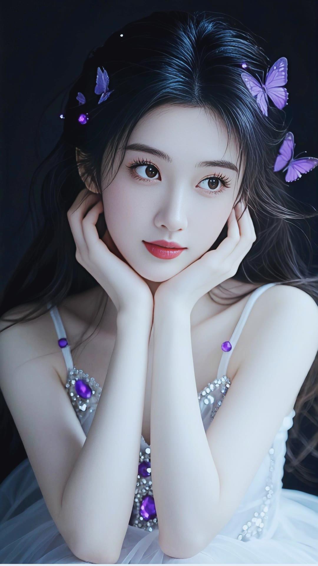 梦幻古风少女,银发如雪,花饰点缀,古典韵味十足。