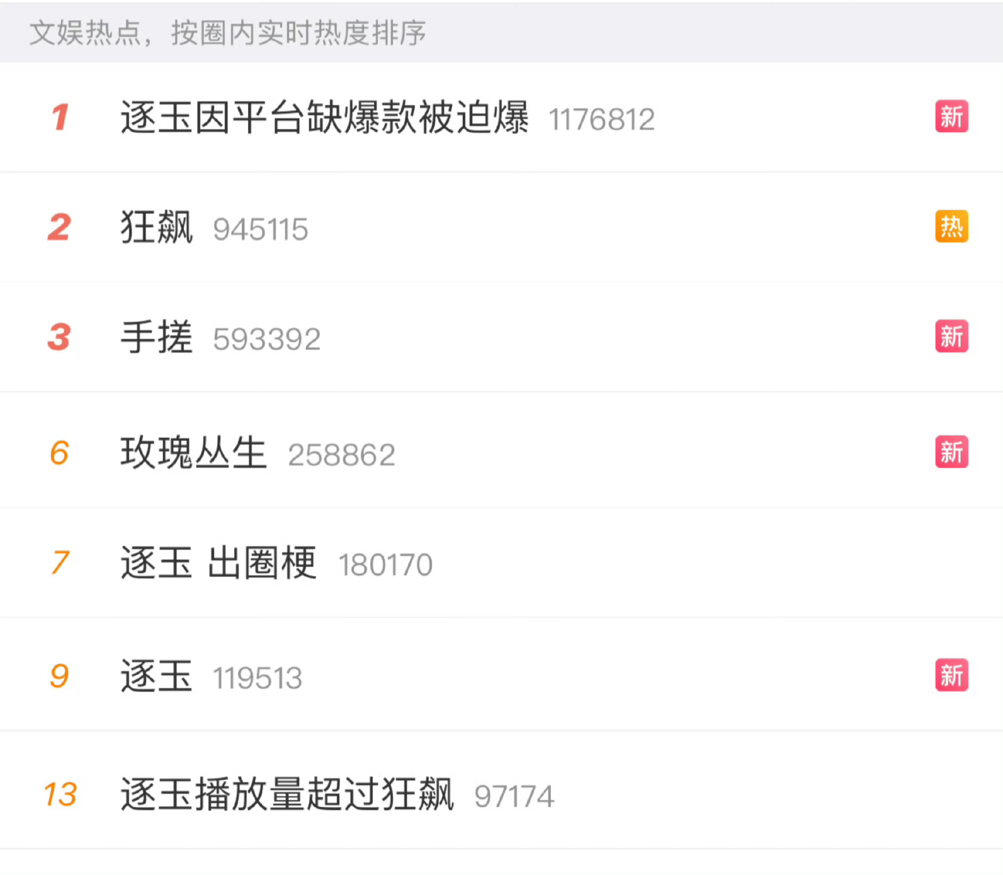 逐玉因平台缺爆款被迫爆逐玉播放量超过狂飙