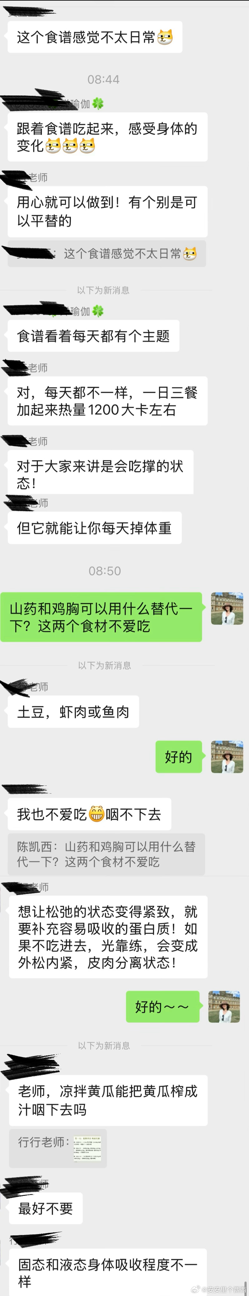 这食谱先不说口感如何我反正是看的一点胃口也没今天早饭都有点吃不下了群里有个大胆的姐妹和老师提出了食谱不日常老师做了解释,大家可以看图 3