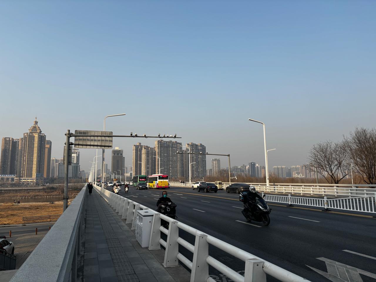 渭河桥越渭水,四十载看咸阳: 从狭窄拥挤到城市脊梁! 第一次走过这座桥是1987年的夏天,骑着一辆飞鸽牌自行车,陪我同学去给他同学送东西。转眼四十年了!忽然想起苏轼的“哀吾生之须臾,羡长江之无穷”了。 桥架的宽了,桥下的水浅了。车人多了,情分少了,好好看看,一年又一年……