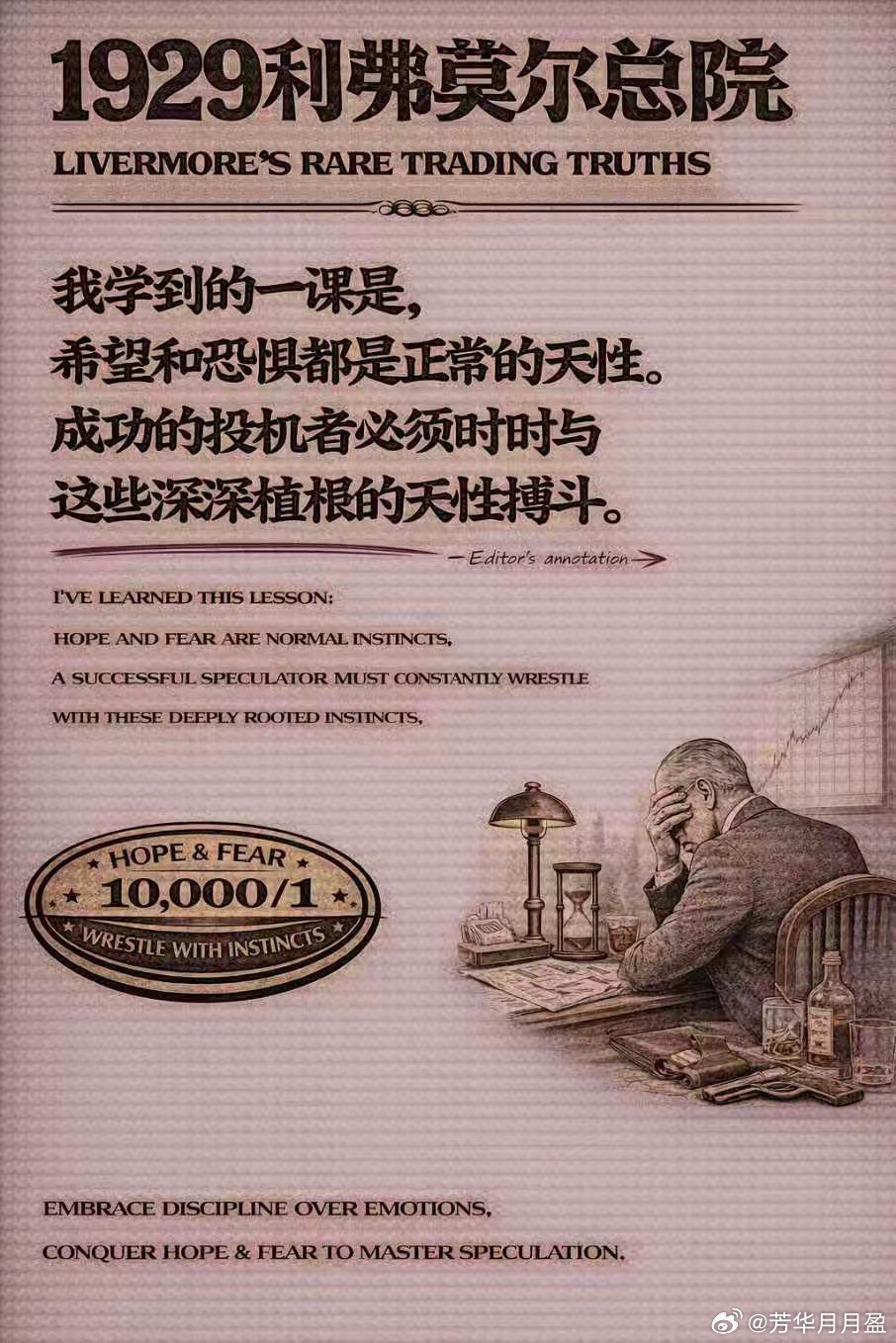 经典语录:希望与恐惧是人的天性,成功的投机者必须不断与这种天性搏斗。