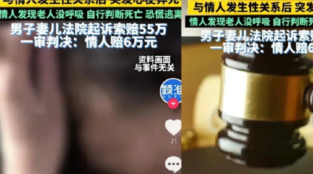 广西,一位66岁的男子竟然出轨女同事,两个人在酒店相欢3个小时,完事后女同事发现男子的大腿上有黑点,但是他却没有打呼噜、也没有呼吸声,看到男子不行了,吓得女同事赶紧离开,但是1小时后又折返,决定告诉酒店工作人员并且报了警,原来男子因为剧烈运动导致心肌梗死,家属气愤不已,将女同事起诉了,要求她赔偿55万元。 这大哥姓王,今年66岁,和那个女同事以前是工友,早些年的时候就认识了,后来俩人断了联系,直到一次工友聚会才重新接上话,一来二去,俩人就越走越近,慢慢发展成了不正当关系,私下里约过好几次见面,每次都做得挺隐蔽。 事发的那天,老王先去酒店开了房,之后就联系了女同事让她过来,女同事赶到酒店房间的时候,老王已经在房间里等着了,俩人一见面就没控制住,在酒店里相处了整整3个小时。 完事儿之后,老王躺在一边休息,还打了一会儿呼噜,女同事就躺在另一张床上睡着了,等她睡醒的时候,发现老王的呼噜声没了,凑过去一看,老王一动不动,大腿上还出现了黑点,伸手摸了摸,连呼吸声都没有。 女同事当时就吓懵了,她也没经历过这种事儿,脑子一片空白,第一反应就是赶紧跑,她慌慌张张地离开了酒店,可走出酒店之后,心里又犯嘀咕,纠结了一个小时,还是决定折回去,告诉酒店工作人员,并且报了警。 工作人员跟着她打开房间门,确认老王已经没了生命体征,后来民警和医护人员赶到,经过检查,排除了刑事案件,最终推断老王的死因是急性心肌梗死,而诱发心梗的原因,大概率就是当时的剧烈运动。 另外,老王的家属后来在法庭上说,老王本身就有高血压和脑梗病史,身体一直不算好,老王的妻儿得知消息后,又气愤又悲痛,气愤的是老王一把年纪还出轨,悲痛的是亲人突然离世。 他们觉得,女同事发现老王不对劲后,没有第一时间报警求救,反而先选择逃跑,耽误了最佳的救治时间,所以就把女同事和酒店一起告上了法庭,要求赔偿55万元。 很多人可能会觉得,老王的死是他自己身体原因导致的,跟女同事没关系,但法院审理后,给出的判决却不是这样,法院认为,老王自身有基础病,又做了剧烈运动,导致心梗猝死,他自己要承担主要责任。 而女同事呢,虽然不知道老王有基础病,但她作为当时唯一在场的人,发现老王异常后没有及时采取救助措施,导致老王错过了最佳救治时机,而且她明知老王是有妇之夫,还和他保持不正当关系,违背了公序良俗,所以要承担次要责任。 至于酒店,法院觉得,事发在私密的客房里,酒店不可能随时监控房间里的情况,而且工作人员在得知情况后,也第一时间配合报警、联系医护人员,已经尽到了该尽的义务,所以不用承担责任,最后,法院判决女同事赔偿老王家属6万多块钱,远低于家属索赔的55万。 说句实在的,这事儿真的挺让人感慨的,老王一把年纪,不好好珍惜家庭,非要搞婚外情,最后把自己的命搭进去了,不仅害了自己,也伤了家人的心,而女同事,一时糊涂和有妇之夫在一起,最终也得为自己的行为付出代价。