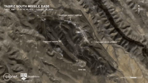 媒体统计了伊朗境内导弹基地遭受美国/以色列空袭后的卫星图: ▪️伊斯法罕以南的导弹基地(图一):3月3日的卫星图显示,两个隧道入口周围有被袭击的痕迹。目前尚不清楚这些隧道是否因袭击而坍塌。 ▪️卡尚的导弹基地(动图二):卫星图显示地面上的建筑物被毁,两辆车辆被炸毁。 ▪️克尔曼沙阿以北的导弹基地(动图三):地面上的所有建筑物都被毁坏,隧道入口可能也遭到损坏。道路上也有袭击痕迹,但目标尚不明确。 ▪️大不里士以南的导弹基地(动图四):新建的雷达穹顶和辅助建筑被毁,隧道入口也遭到破坏。道路沿线也有许多弹坑。 ▪️德兹福尔的导弹基地(动图五):地面上的建筑物因袭击而被毁。 ▪️比德-卡内赫的导弹基地(动图六):隧道入口遭到反掩体弹药的袭击。指挥所和辅助建筑被毁。散落的弹坑表明发射装置也遭到了袭击。 ▪️伊斯法罕以北导弹基地(动图七):最新卫星图显示发射装置继续被摧毁,可能正在撤离地下部分——图像显示至少两个被摧毁的发射装置附近有燃油泄漏痕迹。 ▪️霍尔古的导弹基地(动图八):卫星图显示,该基地再次遭到袭击。这次袭击的目标似乎是隧道入口。 目前尚不清楚美国/以色列是否使用了反掩体弹药,但多次袭击后,隧道入口严重受损。还发现了对一个发射装置的袭击痕迹。 ▪️耶兹德的导弹基地(动图九):卫星图可以看到,袭击目标是隧道入口,辅助建筑被毁。道路沿线的弹坑表明有人试图袭击发射装置,但成功与否尚不明确。 ▪️拉雷的导弹基地(动图十):卫星图可以看到对隧道的袭击痕迹,大多数辅助建筑被毁或严重损坏。道路上的袭击痕迹表明有人试图袭击发射装置。