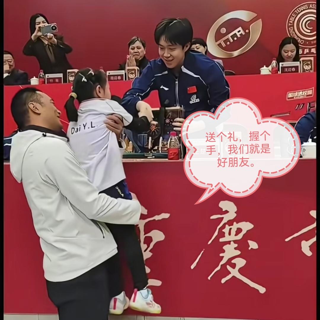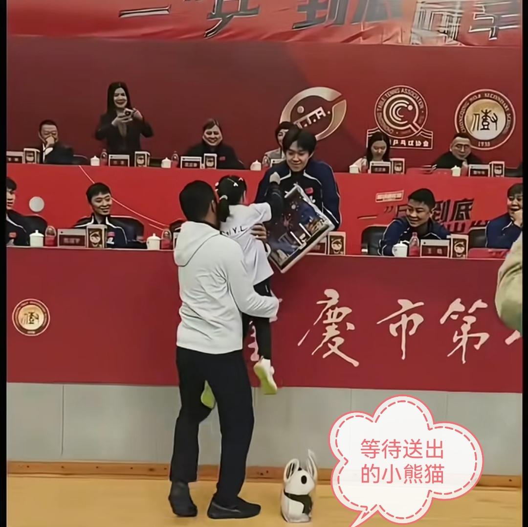 送给楚钦哥哥的礼物,已经送出去了,全网都在关心重庆9岁女孩还有一个小熊猫有没有送出去。 国乒团队抵达重庆后,昨天参加了国球进校园的活动,有一位重庆的小女孩特意给楚钦哥哥和莎莎姐姐都准备了一份特殊的礼物,送给楚钦哥哥的重庆地图的拼图已经亲手送到楚钦哥哥的手里,楚钦哥哥非常开心的接受了来自这位小妹妹精心准备的礼物。 据小女孩的亲戚说,另外一份礼物是为莎莎姐姐准备的,当时小女孩送出拼图后,还特意巡视了一下现场,因为没有看的莎莎姐姐在现场,所以不知道现在小女孩的熊猫🐼玩偶有没有送到莎莎姐姐手里。