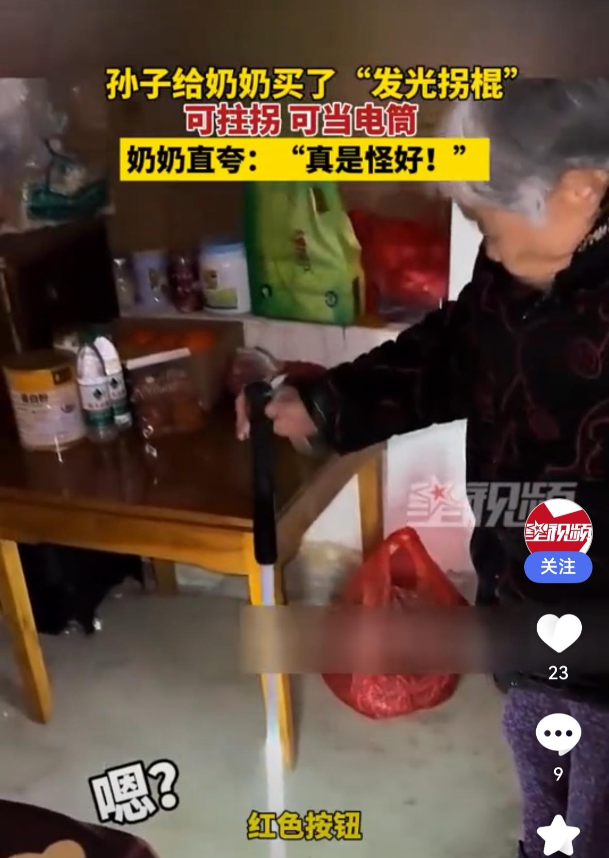 【全村最炫的奶奶!孙子送了根“发光拐杖”,网友:这下走夜路直接变身银河系焦点】🌌👵✨ 最近在安徽,一位暖心孙子给奶奶买了个“硬核装备”——能发光的拐杖!这根拐杖不仅能辅助走路,还自带手电筒照明功能,晚上出门再也不用担心看不清路啦。 奶奶试用后表示很满意,拄着新拐杖在村里溜达了一圈,结果因为太亮眼,被网友戏称为“全村最亮的奶”。有邻居笑称:“晚上老远就能看见一道光在移动,还以为是UFO来了,走近一看是王奶奶!” 有网友评论: “这下奶奶晚上打麻将回家,路上都能开个人演唱会了” “建议加个蓝牙音箱功能,奶奶可以边走路边跳《最炫民族风》” “这拐杖比我的人生还亮堂” 不得不说,这届年轻人表达爱意的方式越来越科技化了。以前是“多喝热水”,现在是“奶奶,这根会发光的拐杖您拿好,今晚咱们做村里最靓的仔”! 不过说真的,这种实用又贴心的礼物,既解决了老年人夜间行走的安全问题,又让奶奶收获了“时尚弄潮儿”的快乐。孝心不一定需要多贵重,但一定要“亮”到心里去呀~❤️ 全村最亮的奶 这届孙子太会了 硬核孝心