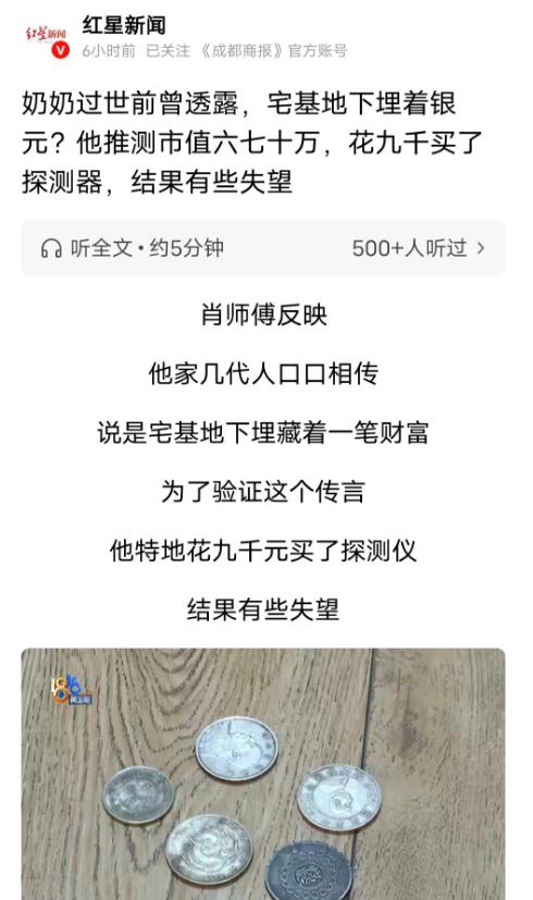 浙江宁波,男子的奶奶去世前曾说过,老家宅基地埋着一两坛银元,男子推算有六七十万,不禁心动,花9000多元买了一探测仪,回老家一测一丁点反应都没有,男子觉得奶奶说的话不可能有假,指定是探测仪的问题,找到一有燃气管道的小区再测,还没反应,他记得卖家说探不到东西就退货退款8500元,没想到,当他找卖家要说法时,才发现自己被人套路了。 肖师傅是湖北人,在宁波做石油化工已经二十多年了,平时很少回老家,日子过得也算安稳,直到前段时间,他跟着徒弟入了古钱币收藏的圈子,心里的一个老念头又冒了出来。 他小时候听奶奶说过,自家老家的宅基地底下,埋着一两坛银元,那是祖辈留下的家底,奶奶说这话的时候语气很肯定,肖师傅一直记在心里,这次跟着徒弟了解到银元的市场价,一算下来,这一两坛银元少说也值六七十万。 更让他坚信的是,当年父亲那一代分宅基地的时候,大伯用推土机推地,还真推出过几枚银元,只不过当时没人当回事,最后被邻居捡走了,可老家的宅基地上早就盖了房子,没法开挖,肖师傅就琢磨着,能不能用仪器探测出来。 后来他在网上看到一款金属探测仪,卖家吹得神乎其神,说能探测十几米深,还能通过地球磁场感应地下物品的氧化膜,埋藏越久的东西,屏幕上显示的颜色越红。 肖师傅一下子就被说动了,虽说这探测仪要9000块钱,但比起六七十万的银元,这点钱在他看来根本不算什么。 一开始他想在正规网购平台下单,方便后续退换,可卖家却说这设备能探墓,怕他用来做坏事,还说他宁波北仑的收货地址是违禁地,需要提供政府委托函才能发货。 肖师傅拿不出证明,卖家就引导他加微信私下交易,双方约定先付500元定金,收到货再付剩下的8500元,还说好要是探不到东西,就退货退款8500元,500元当手续费。 设备到手后,肖师傅立马回老家测试,拿着探测仪在宅基地里来来回回扫了好几遍,结果仪器一丁点反应都没有。 他不愿意相信奶奶骗自己,认定是探测仪出了问题,又特意找了一个有燃气管道的小区测试,毕竟地下有金属管道,按说肯定能有反应,可仪器还是安安静静的,一点动静都没有。 这时候肖师傅才慌了,赶紧联系卖家要求退货退款,可卖家一开始说等初八处理,等到了约定时间,再联系就没人回应了,微信不回,电话要么关机要么无人接听,网上的店铺也早就关掉了。 直到这时候,肖师傅才彻底明白,自己是被人套路了,其实仔细想想,肖师傅就是被“天降横财”的念头冲昏了头,老一辈传下来的说法,大多是随口一提,就算真有银元,这么多年过去,也未必还在原地。 而那些声称能探宝藏的探测仪,其实就是骗子的幌子,故意引导私下交易,就是为了后续失联跑路,现在肖师傅已经从平台拿到了卖家的信息,打算通过法律途径维权,只是这9000块钱能不能追回来,还不好说。 这事也给大家提了个醒,天上不会掉馅饼,遇到这种声称能轻松挖到宝藏的设备,千万别轻信,更别私下交易,不然最后只能像肖师傅一样,竹篮打水一场空,还白白损失了钱。