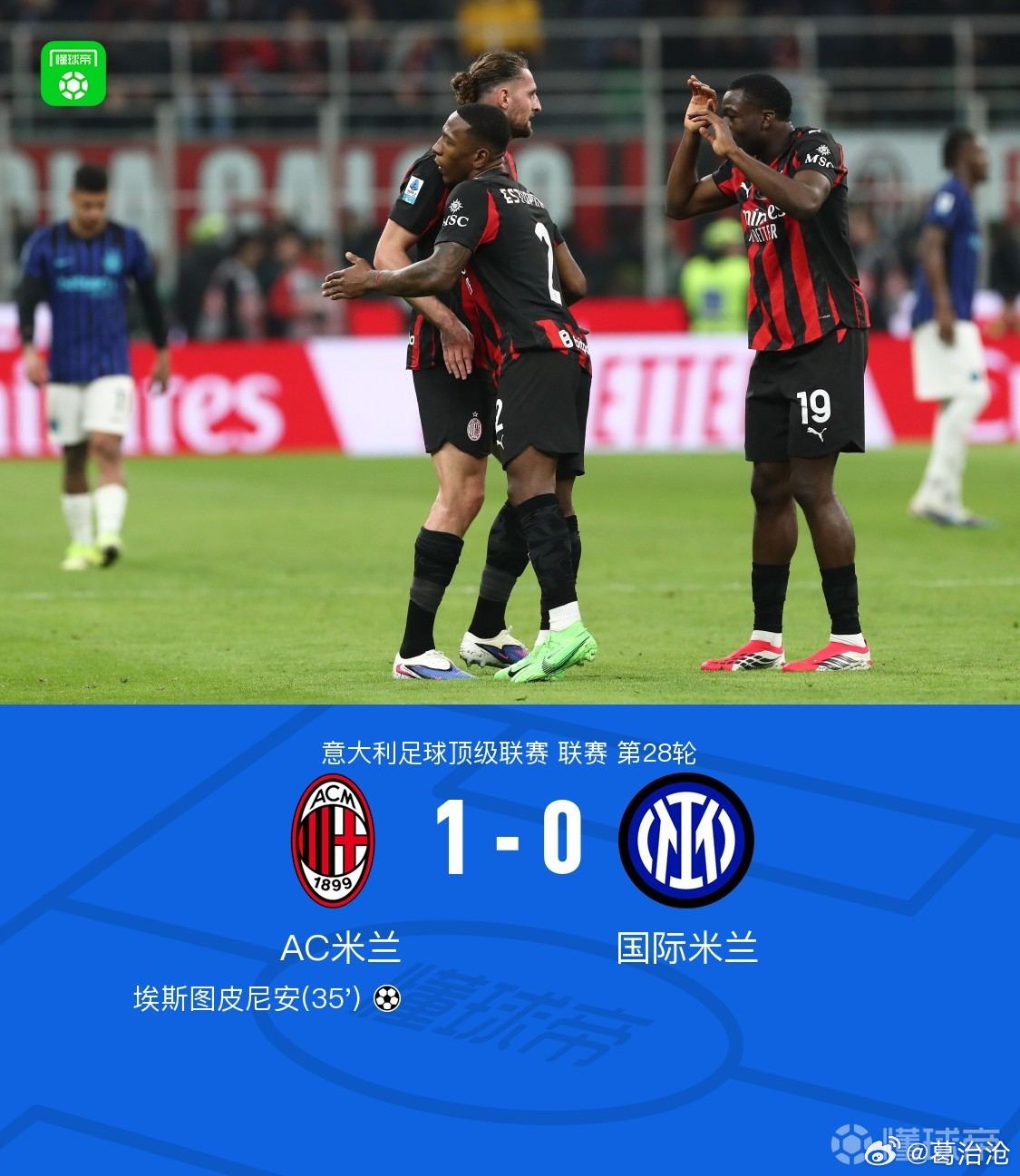 1-0击败国际米兰,AC米兰圣西罗完成赛季德比双杀,近15年首次联赛双杀同城死敌!第35分钟福法纳中场抢断后送出致命直塞,埃斯图皮尼安单刀破网锁定胜局。下半场米兰防守铁桶阵,国米狂轰却颗粒无收,巴斯托尼伤退后防线更乱,米兰全场零封+高效反击,数据刺眼;国米控球占优、射门更多却终结力崩盘,意甲8连胜终结,7分领跑优势被蚕食,年轻军团临场处理还欠火候。