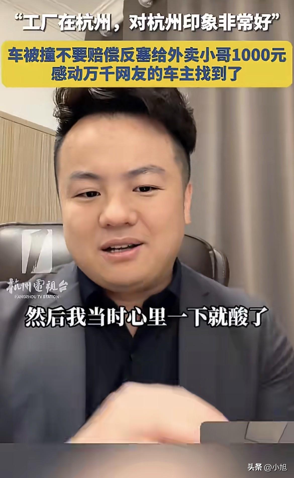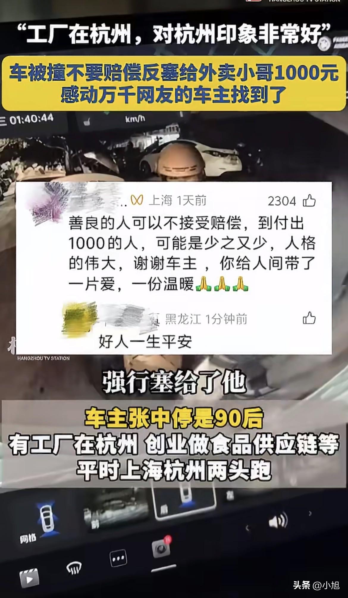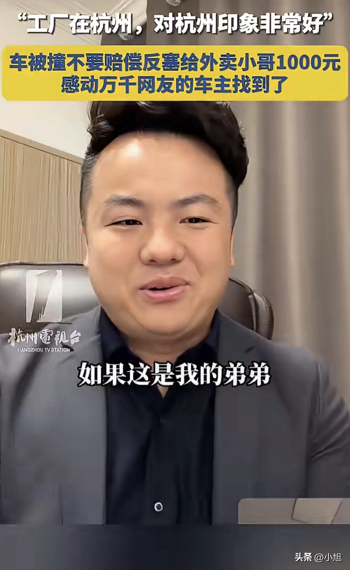3月4号凌晨1点半,杭州上城区一条路边。元宵节刚过,街上的红灯笼还没拆,在风里晃来晃去。 张中停把车停稳,刚熄火,砰的一声巨响。车身一震,他愣了半秒,推门下车。 一个外卖小哥连人带车怼在他车屁股上。电动车前脸碎了,塑料壳掉了一地,外卖洒出来,饺子、鲜花躺在地上。再看自己那辆车的后屁股,雷达坏了,漆也花了。 小哥从地上爬起来,衣服摔破了,手一直在抖。 那个小哥慌了。他跑过来,说话声音都在打颤。他说自己刚从湖南来杭州没几天,还没赚到钱。他指着地上的外卖,说身上就四百块,能不能赔给车主,别报警。 他说话的时候,眼睛不敢看人。 张中停愣了一下。他看了看时间,凌晨一点半。元宵节刚过,这小孩不在家,不在出租屋,在外面跑单。 他又看了看那个小哥。二十岁不到,瘦瘦的,手抖得厉害。洒在地上的三份外卖,有饺子有鲜花。平台那边估计还得赔一笔。 张中停脑子里突然冒出一个念头:如果这是我弟弟呢? 如果是我弟弟,刚到一个陌生城市,还没站稳脚跟,凌晨还在外面跑,不小心撞了别人的车,掏光身上所有的钱只有四百块,站在那里发抖——我希望别人怎么对他? 他没接那四百块钱。 他转身回车里翻东西。车里刚好有过年剩下的红包,他往里面塞了一千块,走回去硬塞给那个小哥。 小哥懵了,推着不要。 张中停说,拿着吧,红包拿出来了,没有拿回去的道理。 他没留小哥的电话,也没问名字。后来两人再也没见过。 这事本来就这么过去了。直到他把行车记录仪的视频发到网上,突然就火了。千万网友点赞,评论区炸了锅。 随着视频爆火,网友们开始扒这位暖心车主的底细。一扒不要紧,发现这哥们儿是个宝藏。 90后,单身,做食品供应链生意,经常上海杭州两头跑。过年的时候他还干过一件事:去寺庙求姻缘,结果去早了没开门,他愣是把整个寺找了一遍,把住持找出来给他开门。 评论区瞬间歪了楼,变成大型相亲现场。把我妹介绍给你吧。结婚了没,没结婚把我姐介绍给你。 张中停被逗笑了,说感谢大家觉得我是个好人,欢迎大家和我做朋友。 他说车尾一个雷达撞坏了,修修要几千块。 里外里一算,他亏了至少好几千。 有人问他当时怎么想的。他说,当时那个小哥说能不能赔四百块的时候,他心里一下子就酸了。洒在地上的外卖有三份,水饺、鲜花之类的,估计也得赔个一两百。如果这是我的弟弟,碰到这种情况,我心里会怎么想? 注意这句话:如果这是我的弟弟。 不是如果我是他。是如果这是我的弟弟。 这两种共情完全不一样。如果我是他,是站在对方的角度想问题。但如果这是我的弟弟,是把对方当成自己人。 亲人出了事,你不会算账,不会计较得失,你只会想怎么帮他。 张中停把那个陌生的外卖小哥,当成了自己的亲人。 而小哥撞了车的第一反应是赔钱私了,说明这孩子是想承担责任的人。但他掏光身上所有的钱也只有四百,说明他真的太穷了。刚来杭州没几天,还没赚到钱,元宵节刚过就在外面跑到凌晨一点半。 这种孩子,大概率是从小地方出来的,家里条件不好,没上什么学,出来打工想挣点钱。送外卖这行,门槛低,来钱快,但苦也是真的苦。风里来雨里去,一单几块钱,跑一天也就两三百。 他撞了车,第一反应不是跑,是掏钱。四百块,可能是他好几天的生活费,可能是他交完房租剩下的全部。 张中停那一千块塞过去,等于在说:你没错,你不用怕,这座城市欢迎你。 张中停说,他对杭州印象一直很好,正在考虑把上海的事业慢慢搬到杭州来。 为什么?因为问路的时候,杭州人如果不远,会直接把你领到目的地。 都是把陌生人当自己人。 这事发酵了几天,网友们在评论区接力,晒出自己在杭州遇到过的暖心事。 暴雨天,有人骑车绕回来塞给你一把伞。等公交车没带伞,旁边阿姨默默把伞偏过来,自己半边肩膀淋湿了。妈妈在超市晕倒,店员帮忙叫120、陪着去医院,忙到中午一点多没吃饭,临走时说我也是当妈的,你好好照顾妈妈。 这些事每天都在发生,只是没人专门记下来。张中停那条视频,像一颗投进湖里的小石子,把这些泛起的涟漪都带了出来。 有人说这是杭州的城市温度。可哪有什么城市的温度,不过是一个一个的人,在那一刻,做了那个选择。 张中停做了他的选择。那个给陌生人塞伞的骑手做了他的选择。那个把伞偏过来的阿姨做了她的选择。 这些选择加在一起,就成了这座城市的样子。 一个三十岁左右的创业者,车被撞了,修要几千块。他本来可以报警,可以走保险,可以让这个小哥背上债务。 他没有。 他给了这个小哥一千块,说,拿着吧,红包拿出来了,没有拿回去的道理。 然后两个人再也没见过。 每个人心里都有一份善意,只是大多数时候,它被生活压着,被现实裹着,被各种算计和防备包着,出不来。 但偶尔,会有那么一瞬间,一个人做了个选择,把这份善意拿了出来。 然后所有人都看见了自己的那份。 你怎么看这件事?