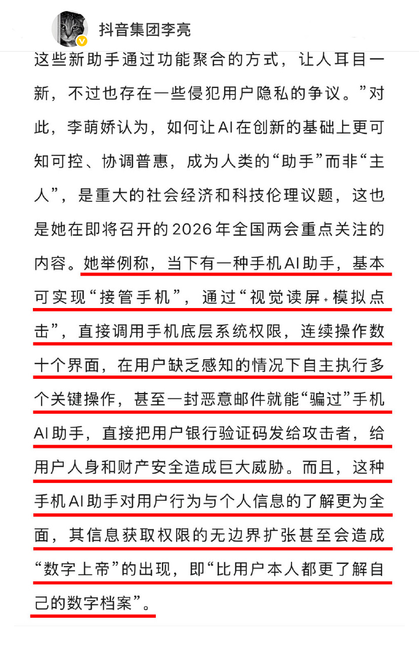 太敢说了,抖音高管下场对线,直言政协委员被误导了。因为一位政协委员提及AI助手“越权操作”,再一次把豆包手机助手推上风口浪尖。