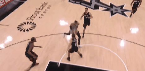 另有一些可爱的细节:比如火箭三人合围马刺6投不中的瓦塞尔——瓦塞尔喂了卡斯尔三分。比如火箭换防+夹击——却放马刺最稳的定点射手凯尔登空位远射。