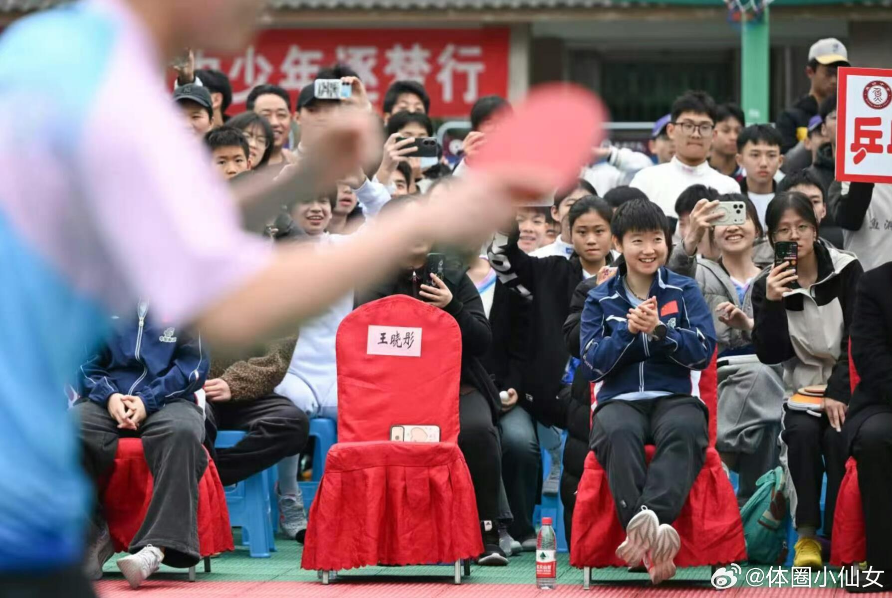 3月8日超暖心的国球之约!孙颖莎、王艺迪、石洵瑶、韩菲儿、王晓彤、朱梓宇、杨惠泽走进重庆巴南区鱼洞中学,和热爱乒乓的少年们同台切磋、暖心问答、互赠礼物!小球传递热爱,冠军点亮梦想!