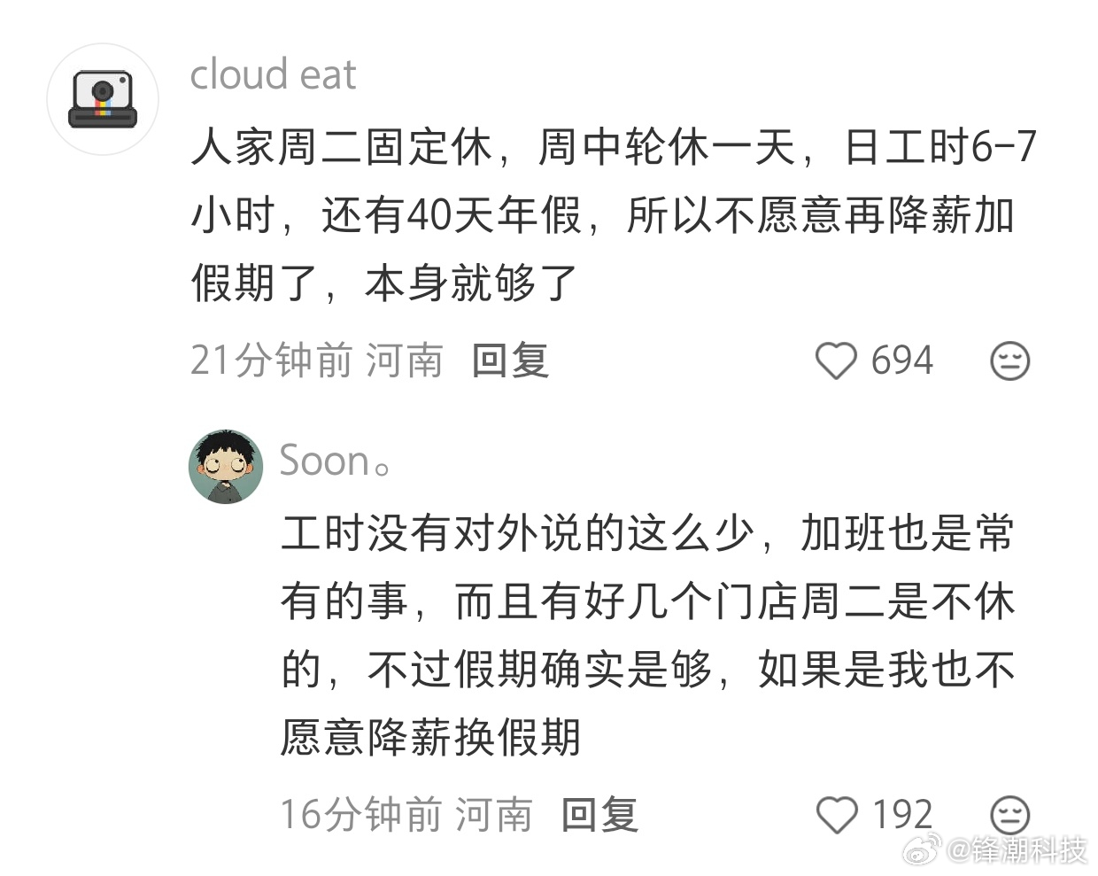 据悉,胖东来目前是年休40天,每天工作7小时。