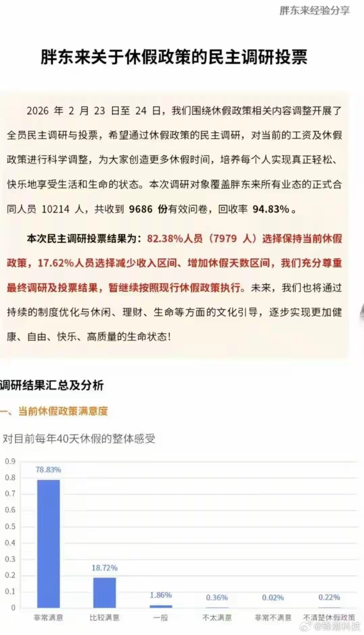 胖东来万人投票:超8成员工拒降薪换更多假期。