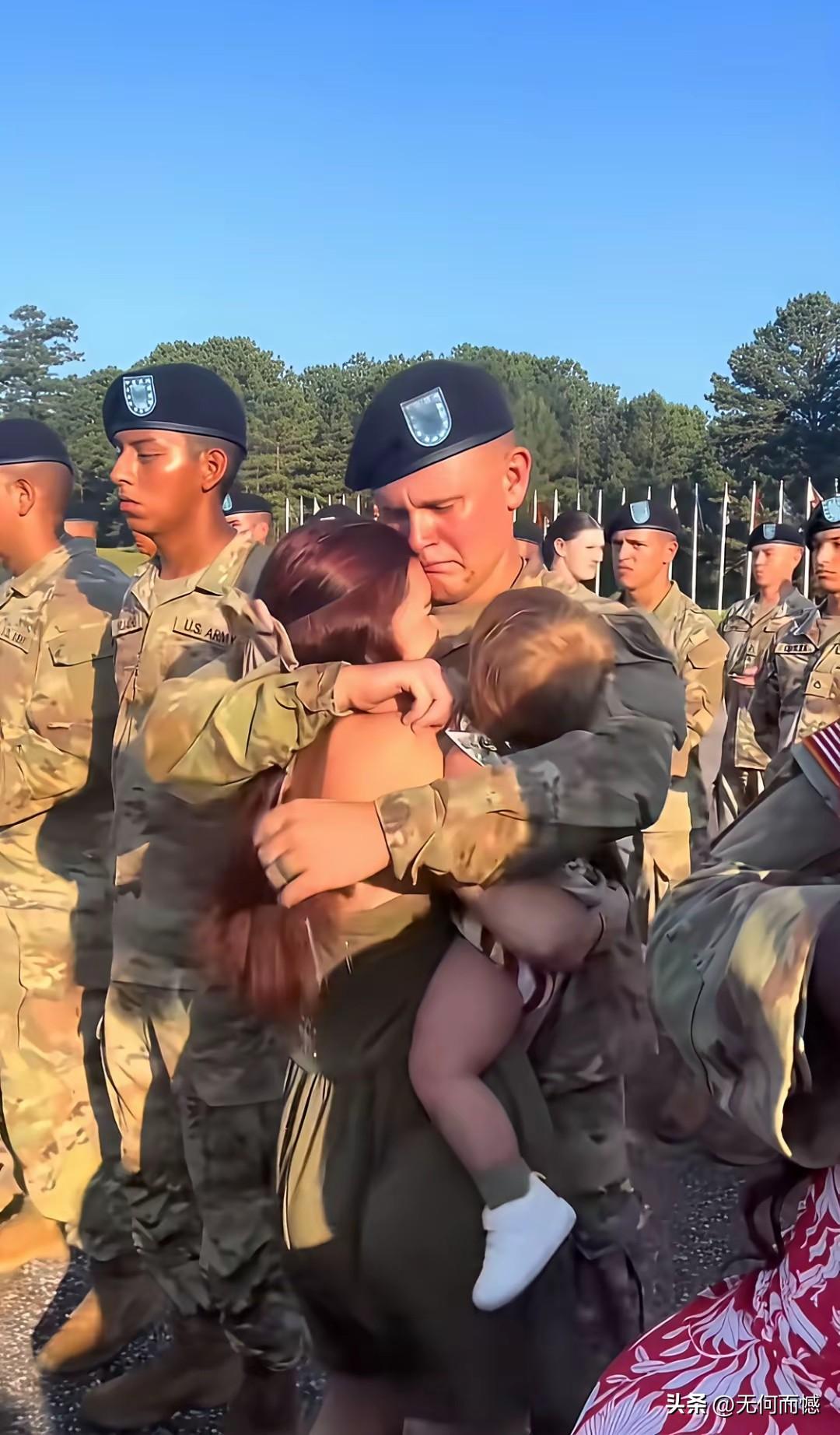 这些大兵和妻儿告别,也是难舍难分,双眼也噙满了泪水,从某种角度讲,每一次离别很可能都是生死离别,因为战场上的炮弹不是吃素的,去前线的时候,是个活蹦乱跳的大活人,下前线的时候,很可能就是一具具冰冷的尸体!