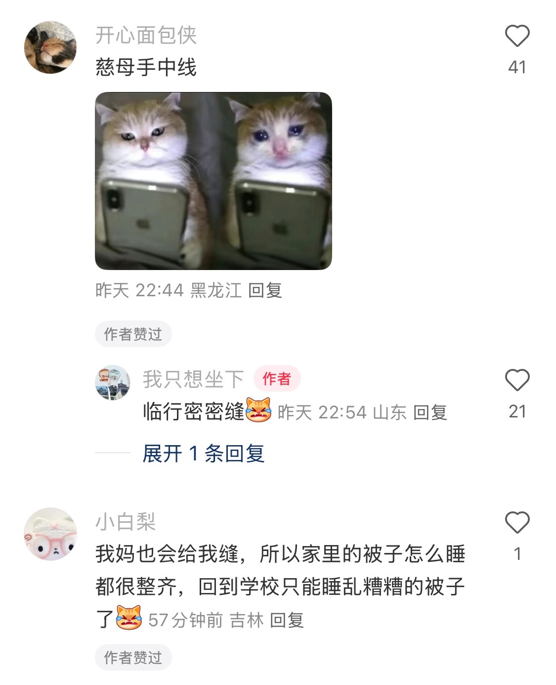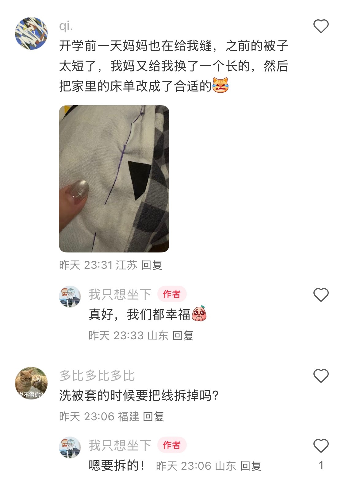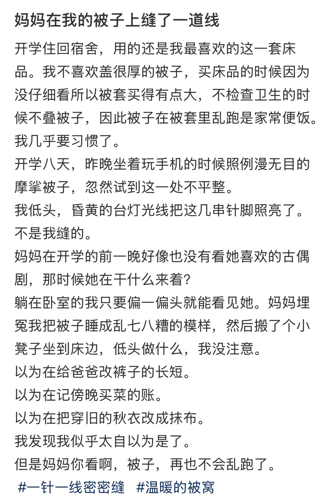 妈妈在我的被子上缝了一道线