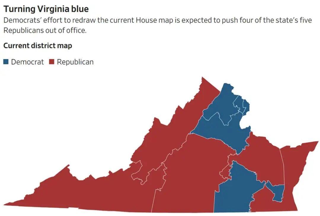 美国民主党人正在发起最后阶段的宣传攻势,试图说服弗吉尼亚州选民在11月选举前重新划定该州的国会选区,该方案可使该州当前蓝红6:5的格局变成10:1。关于该方案的提前投票将于周五开始,整个投票将于4月21日结束。 一些共和党人抱怨称,其阵营中最具影响力的人物——前州长扬金却基本上没有参与这场斗争。扬金曾在2021年赢得弗吉尼亚这个倾向民主党的州的州长选举,共和党人表示,在当前的这场政治斗争中,他本可发出具有影响力的声音。去年11月,就在扬金离任前不久,一些众议院共和党人曾找到他,恳求他帮助开展竞选活动,反对即将举行的选民公投。但迄今为止,杨金既没有参与筹款,也没有出现在反对民主党方案的广告中。 图片来源于网络