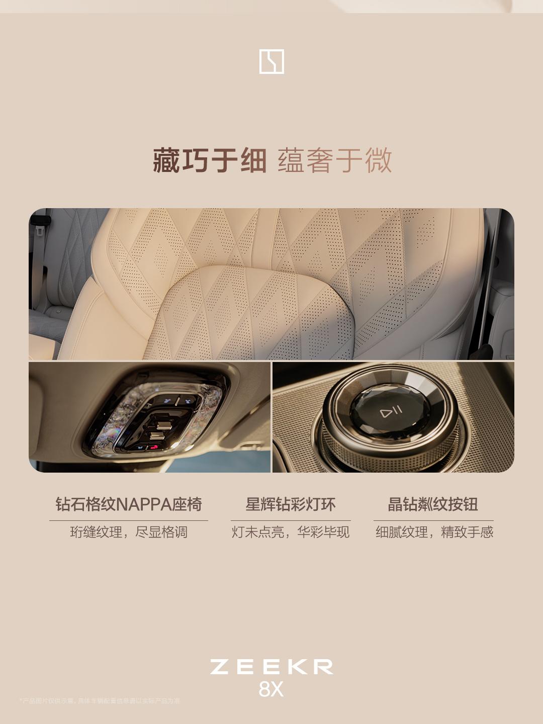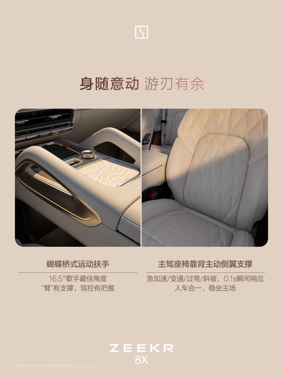 官方发了极氪8X的内饰详解,设计全能看到,部分参数也标注了,有9X的质感,还有它自己的小心思在里面。中控副驾双联屏,蝴蝶桥扶手,实体按键挺多,宾利同款音响,二排150mm的滑轨,老板位安排上伊姆斯躺椅,简单讲就是内部功能兼顾家庭,外观又挺拿捏男主人的,不说它新能源身份,你觉得它像个比较高档的燃油车,挺新的一个“物种”,预计第二季度上市,马上会有技术发布会,期待ing。另外我们刚刚上了视频,里面讲的更详细!【来自懂车帝车友圈】