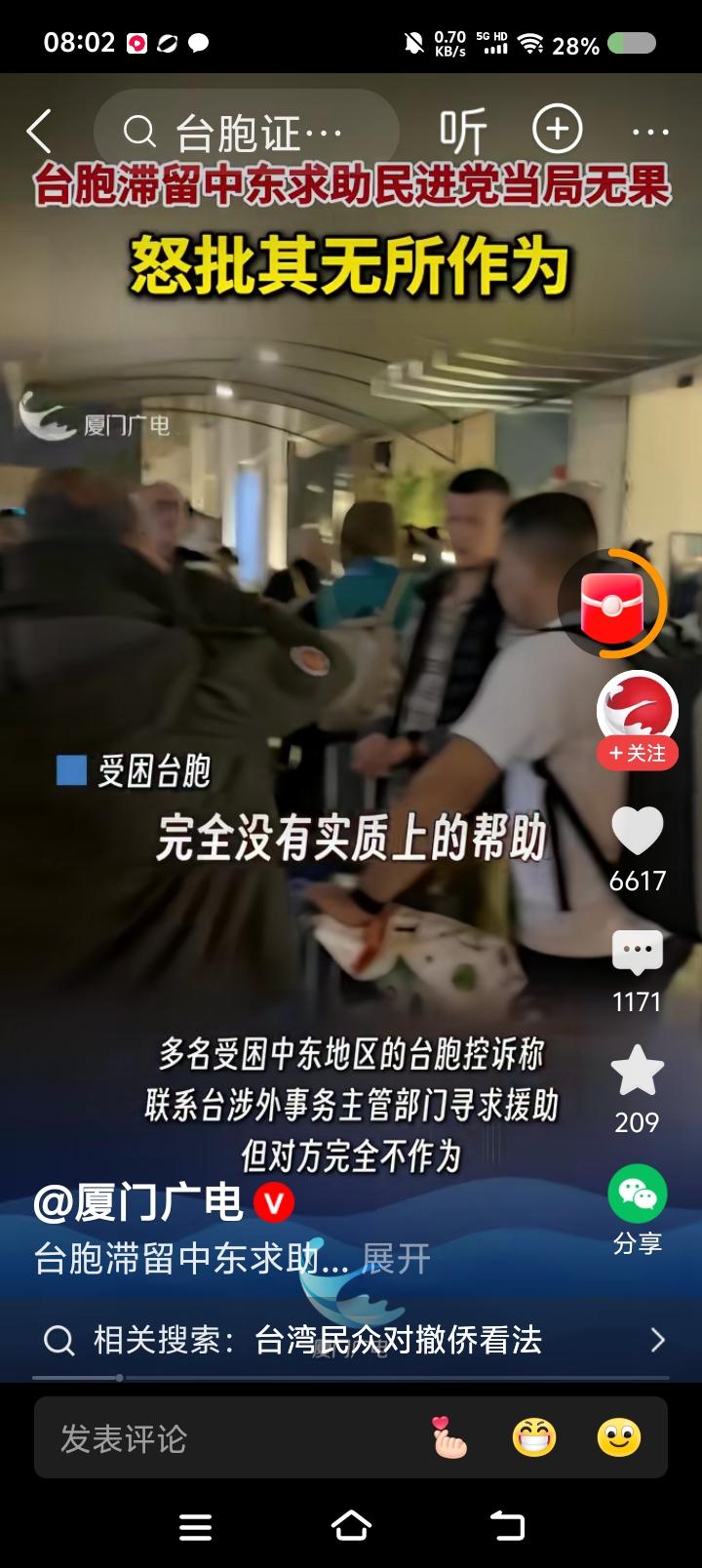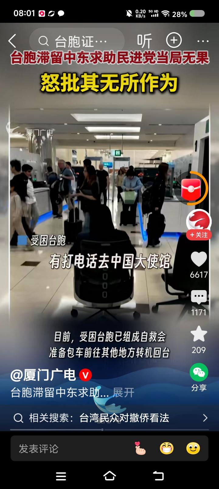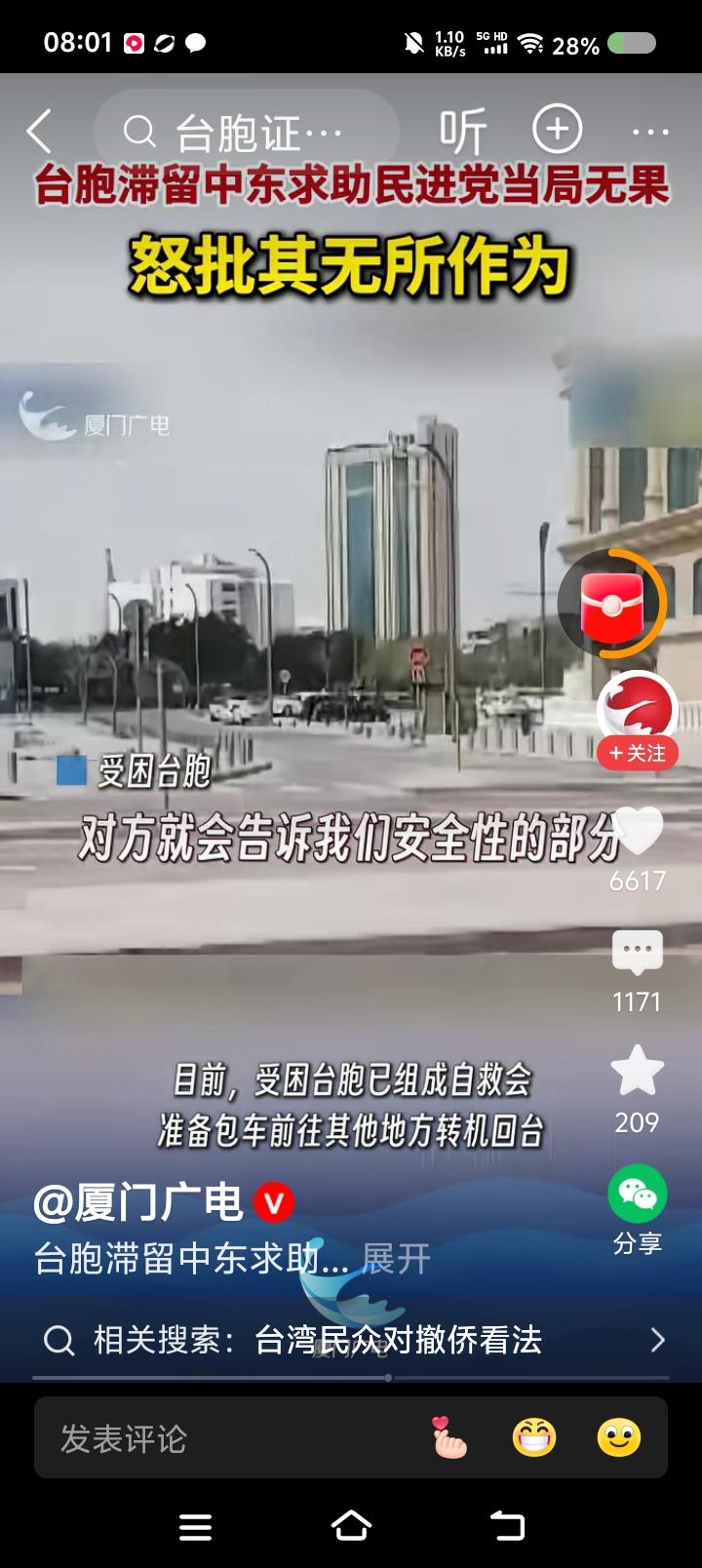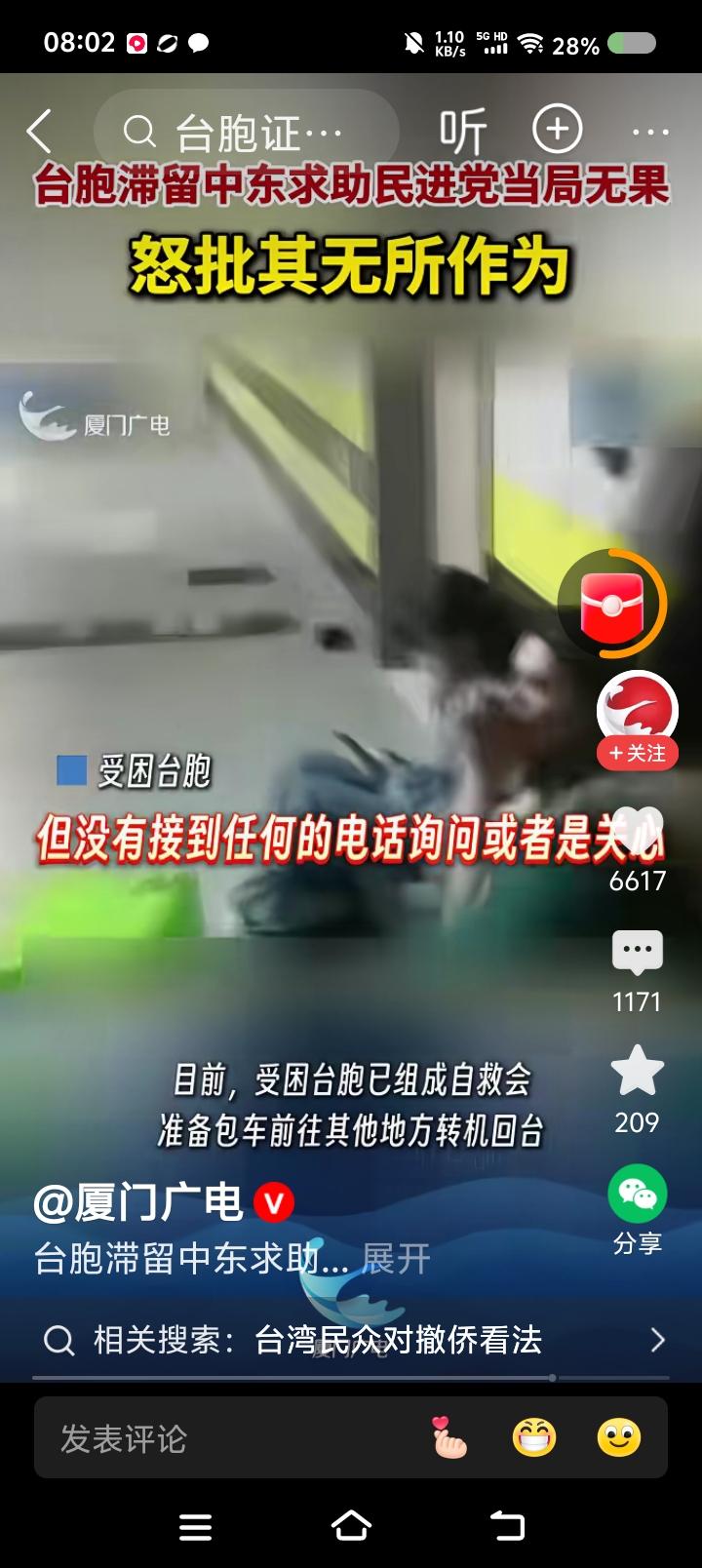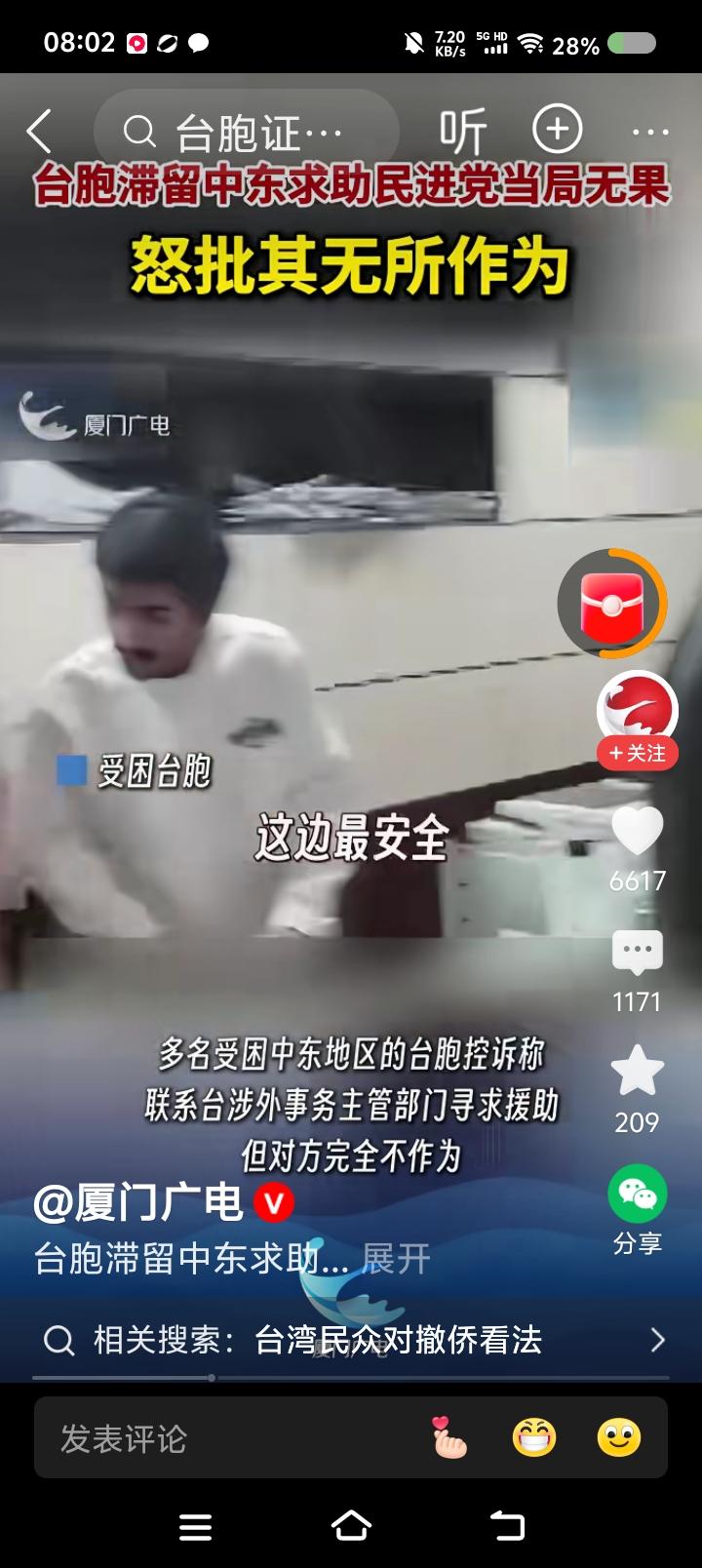 台胞,不要有了难处才想起国台办—— 据报道,某台胞滞留中东,受局势困扰,咨询台湾省有关机构,被告知“原地不要动,当地很安全”;联系中国大使馆,被告知安全事项。 此台胞批评台湾省部门的不作为。 点评: 一、为中国大使馆点赞! 二、敬告台湾同胞,不要有难了才想起中国。 你不知道台湾当局除了个别所谓盟友,没有外交权吗?与中国建交的国家,没有中国外交部门努力,怎么可能协助中国台湾省人?这是个常识,你们不知道吗? 中国政府从大局出发,默认台湾省所谓驻外机构有某些权利,但坚决反对它们从事分裂活动,一旦完成统一,这些机构要么撤销,要么改组。 所以,台湾同胞,记住:民国已亡,中华人民共和国政府是代表全中国人民的唯一合法政府,台湾是中国的一部分,历史上、法理上、现实上都是。“台du”只有一个结局:死!台湾同胞要自觉与“台du”势子划清界限。
