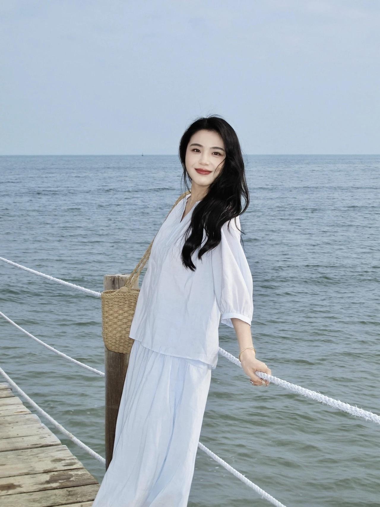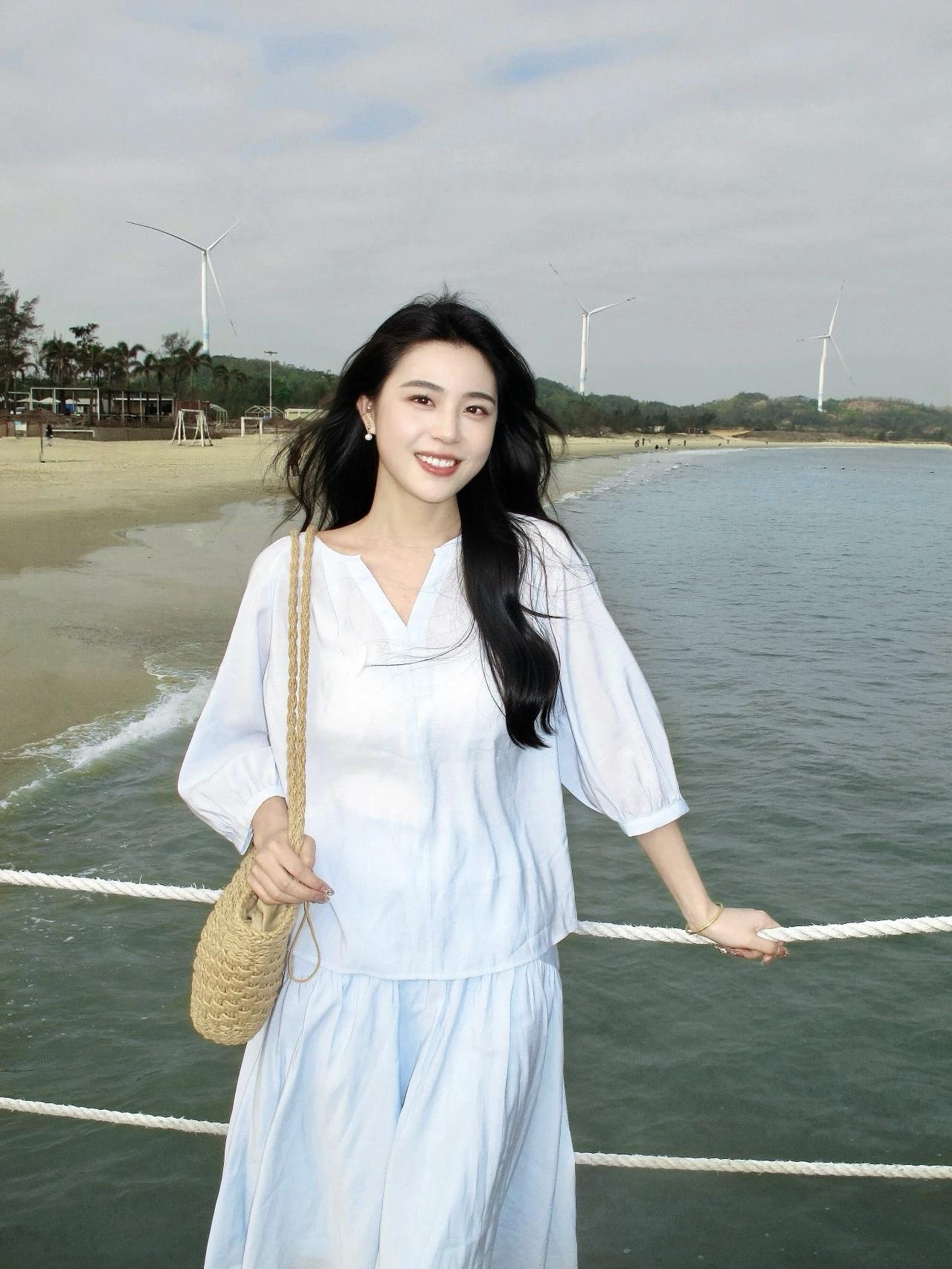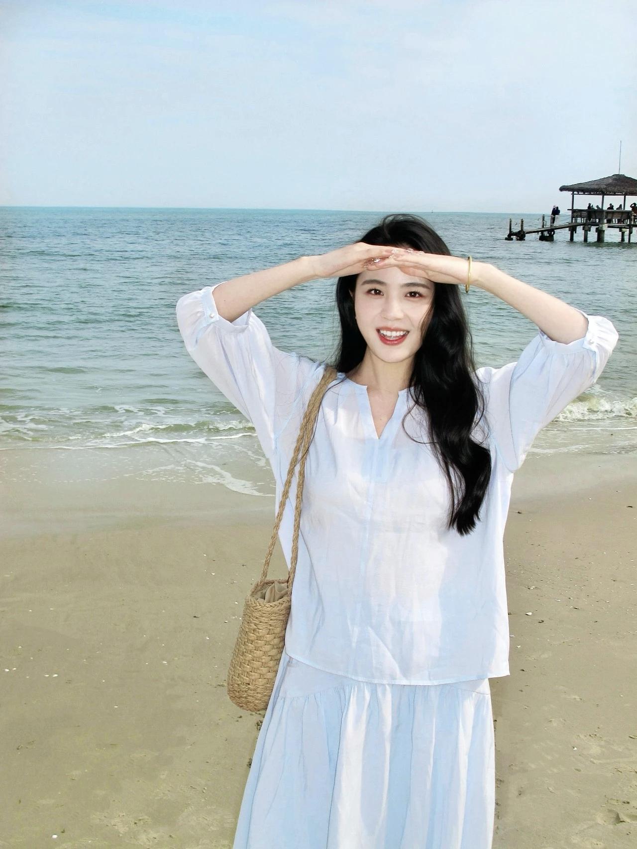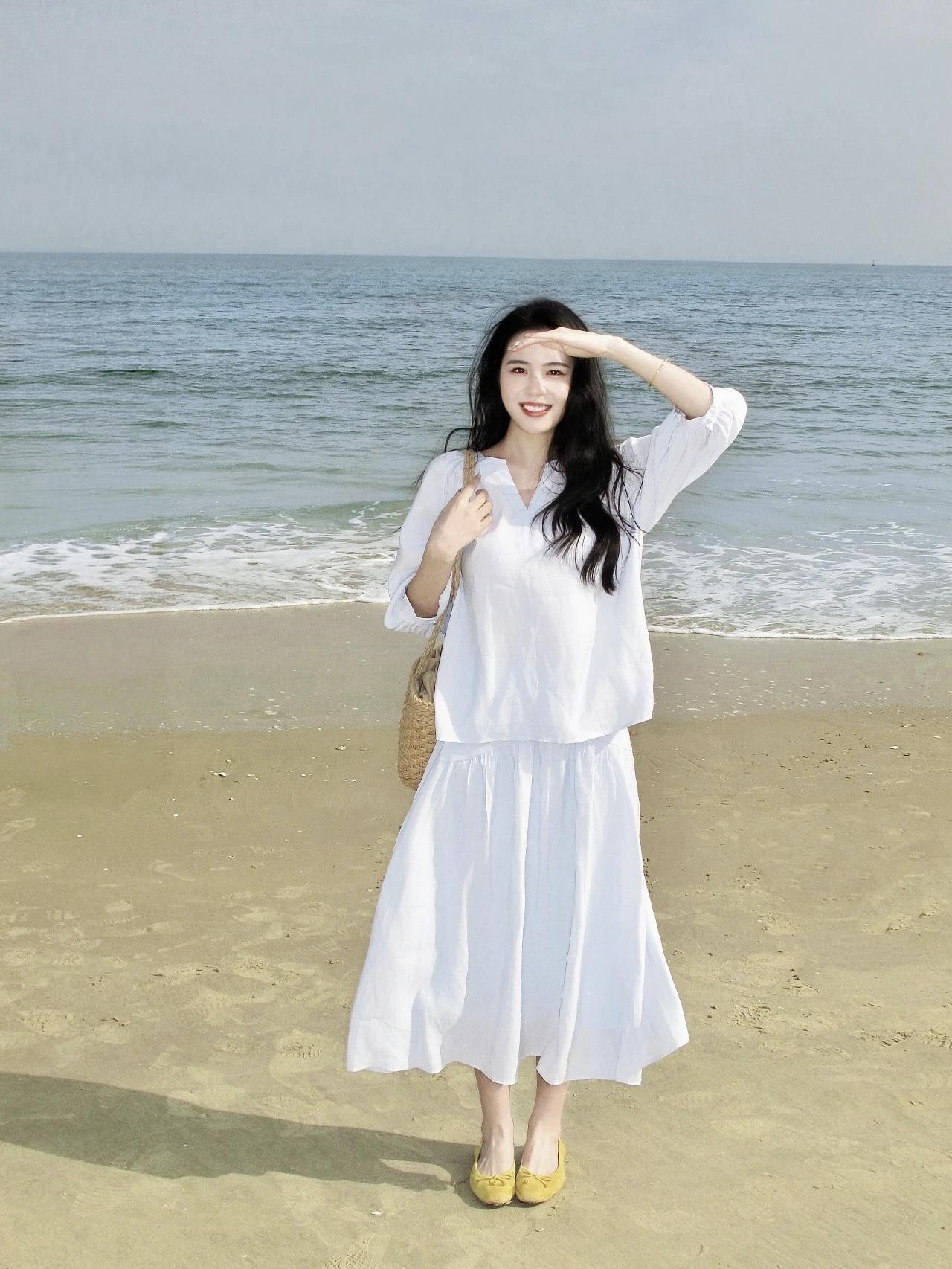 海边漫步,白色长裙随风飘逸,阳光灿烂,心情愉悦!🌞👗🏖️长发飘飘,白衣飘飘,仙气飘飘的感觉沙滩白裙少女 白色沙滩长裙 度假白色连衣裙 海边白裙造型 海边氛围感长裙 蓝色沙滩裙 白色旅游长裙