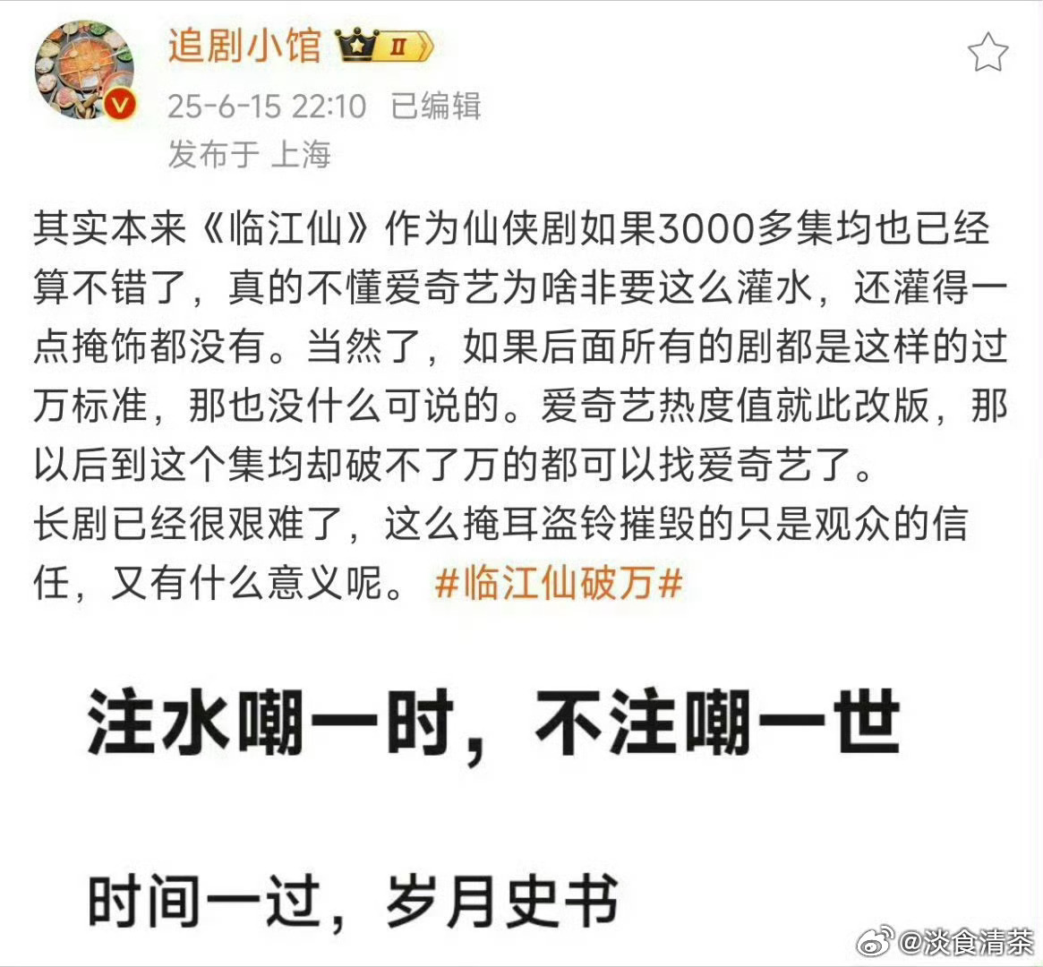 我想起以前粉丝说的平台针对…以前我还真没信比如久久不接平台剧的话… (平台觉得自