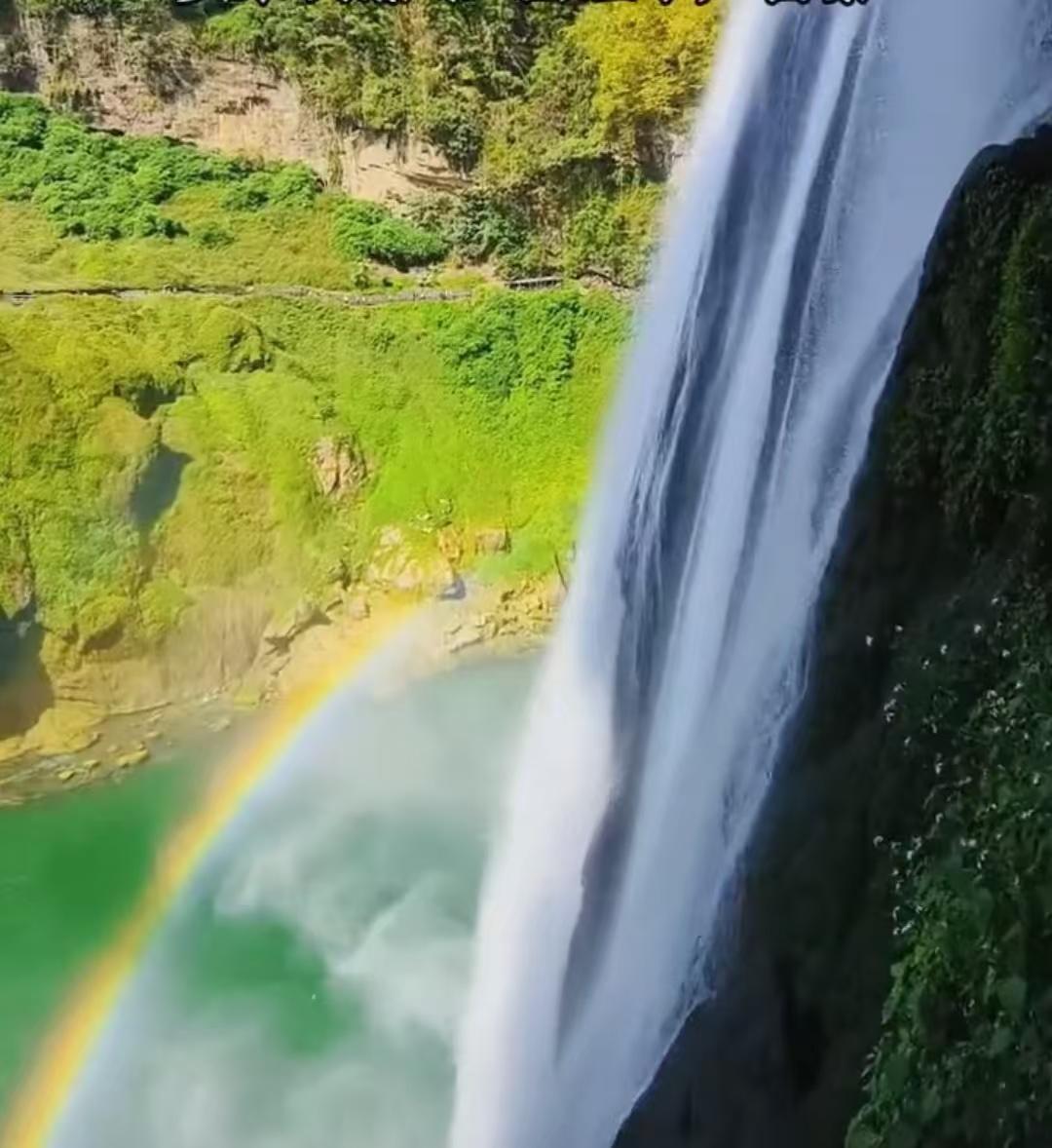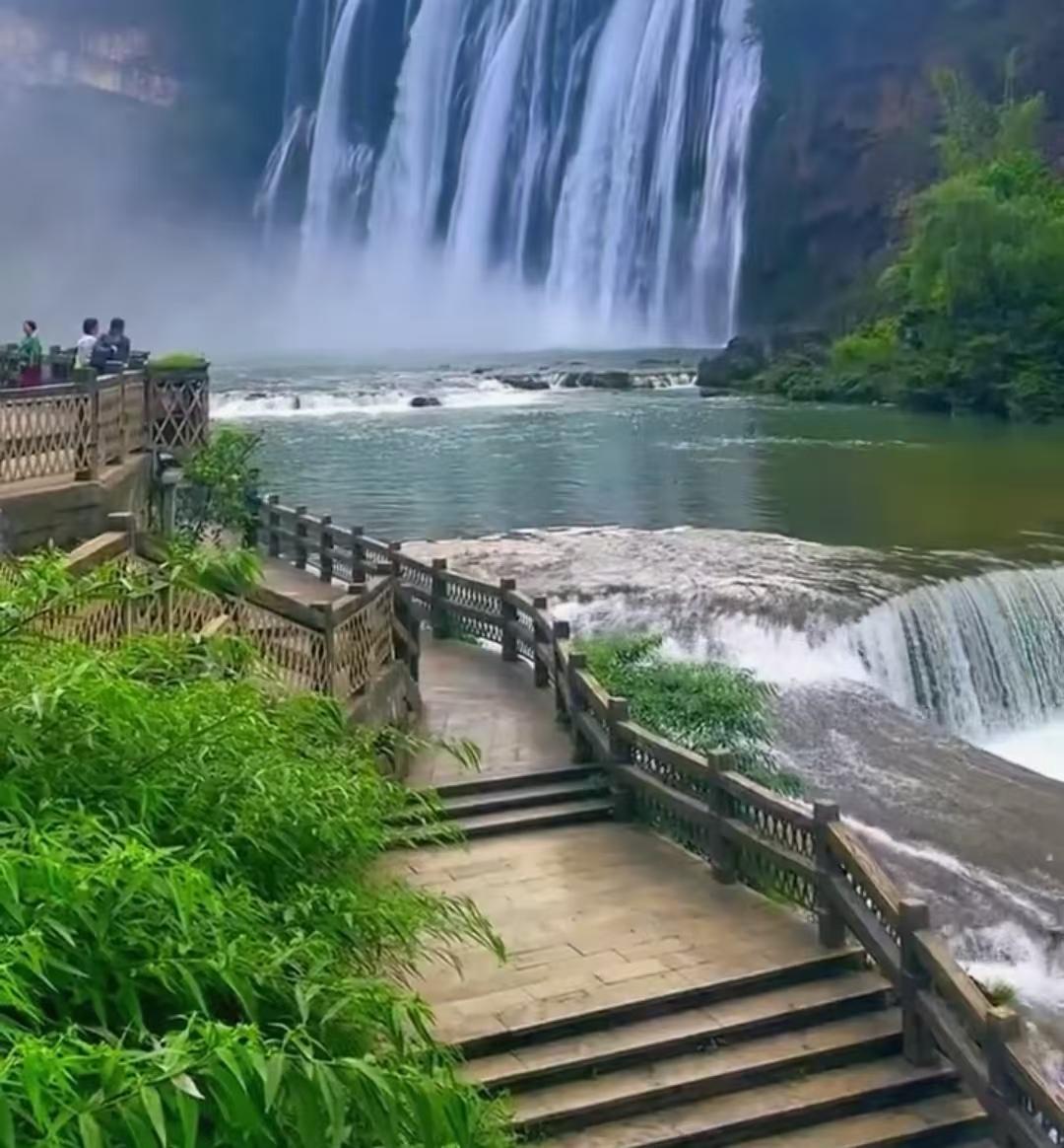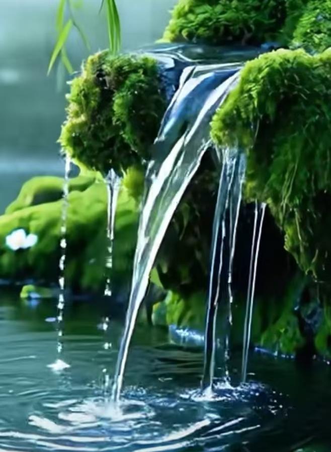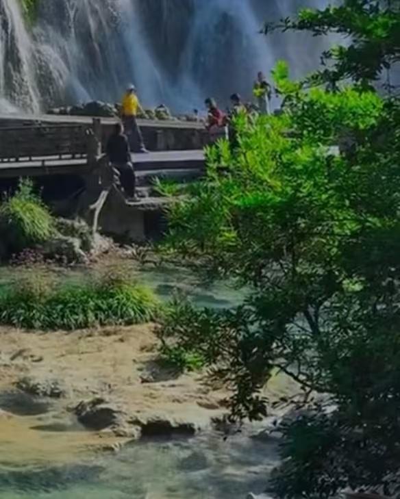 瀑布流水湖泊,景色很美,就像財源一樣滾滾而來。