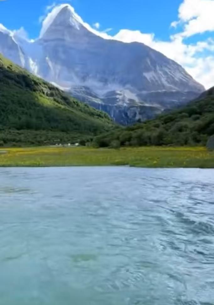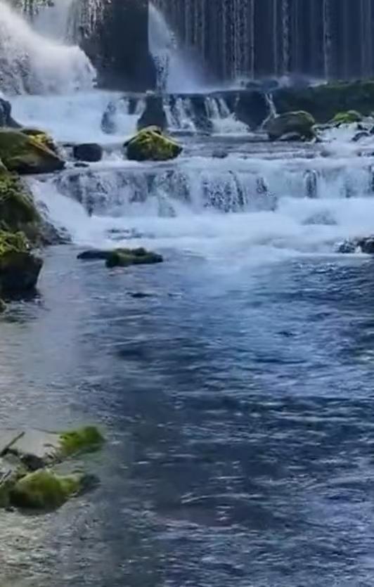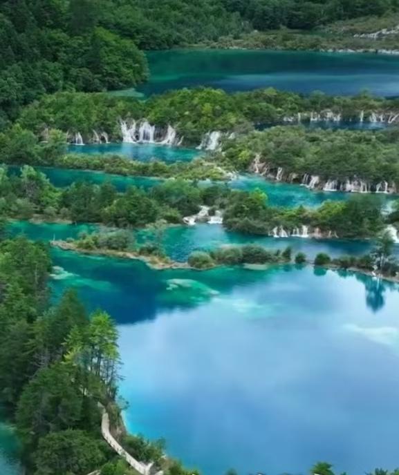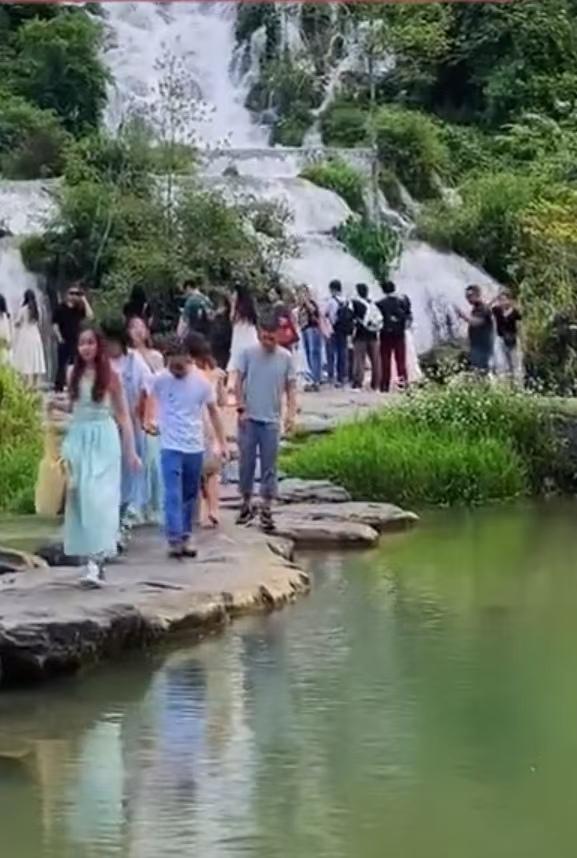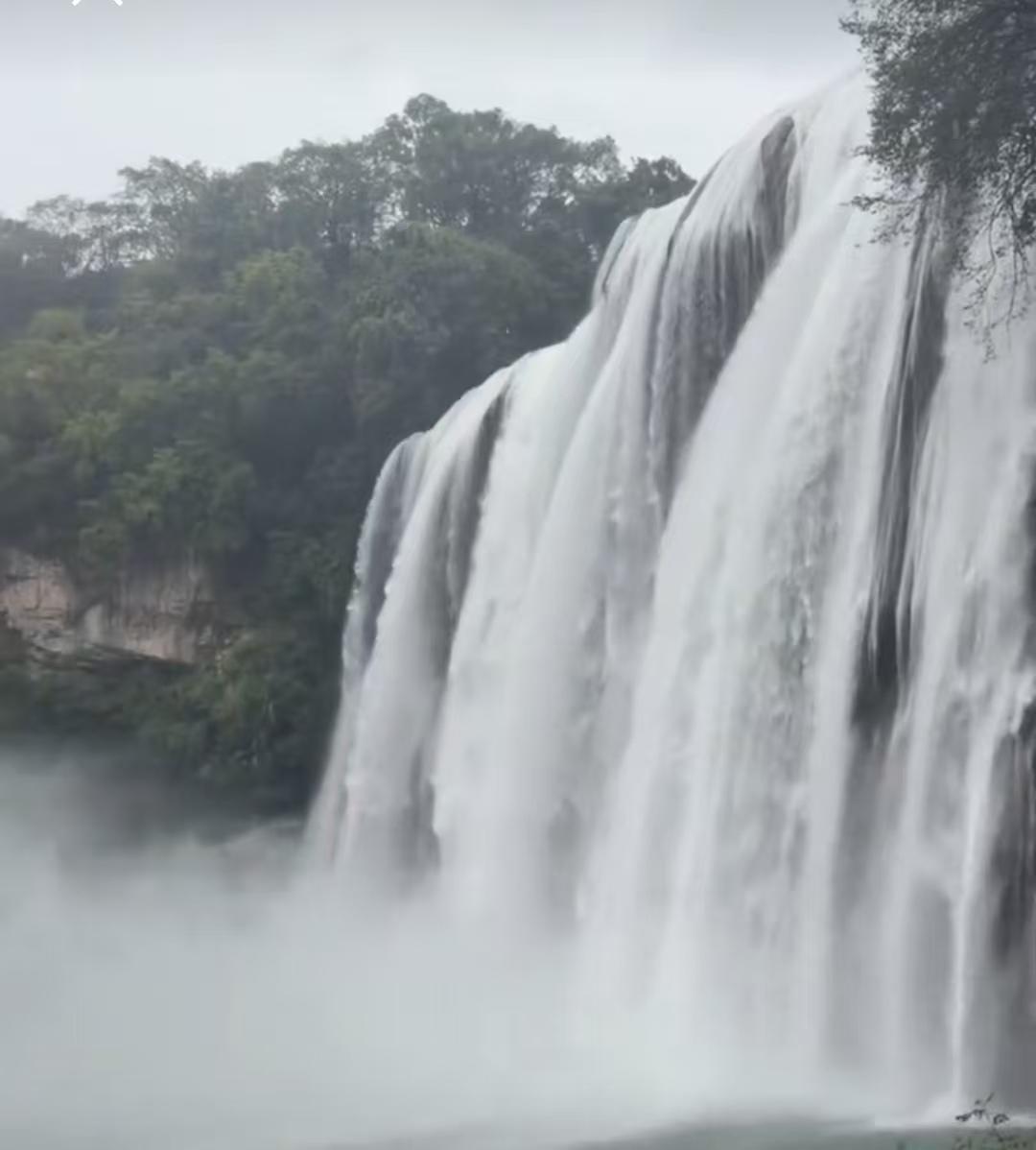 瀑布流水湖泊,景色很美,就像財源一樣滾滾而來。