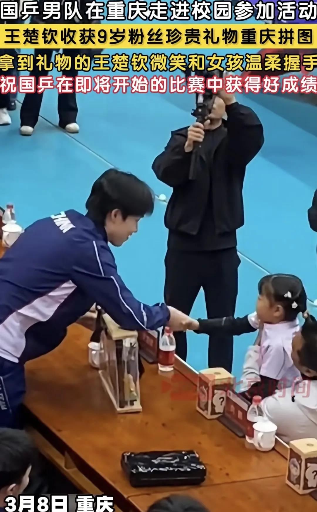 小朋友喜欢王楚钦,孙颖莎,这些小球迷才是真球迷,他们喜欢打球,喜打球好的王楚钦,孙颖莎,小球迷送给王楚钦礼物,小朋友的真心暖到王楚钦,感动了王楚钦,看莎莎打球的小朋友,眼神惊讶,崇拜莎莎打的好。小朋友们内心纯真干净,他们崇拜优秀崇拜英雄,他们不懂什么是饭圈,他们不会造谣污蔑带节奏。那些造谣污蔑王楚钦,孙颖莎是饭圈的人才是真正该打击的饭圈。