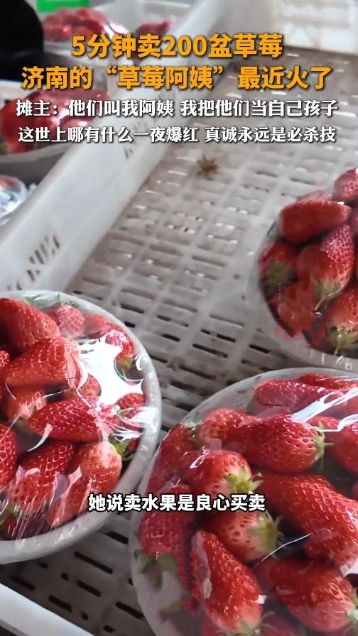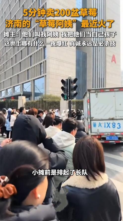 可别不信!济南这位卖水果的阿姨,昨天差点被排队长龙“吓着”——刚把草莓摆上桌,5分钟!200盆全空了! 邓洪岭阿姨在奥体龙湖天街旁边摆摊十多年,论起卖水果的门道,就俩字:实在。秤给得足,草莓新鲜得能闻到甜味,老顾客都是你带一个我带一个,慢慢攒起来的。 谁成想,就因为网友拍了段视频说“这草莓太绝了”,好家伙,今天一到地方,排队的人从摊前绕了半圈,阿姨手忙脚乱地装草莓,嘴里还念叨:“真没想到啊,微信加好友的申请,滑半天都滑不到头!” 说白了,哪有什么平白无故的走红?不过是十年如一日的靠谱,刚好被更多人瞧见了。这年头,能守着良心把小事做好,比啥都强。你遇见过这种“藏在街头”的实在人吗?来唠唠。 "草莓阿姨"卖了十多年水果突然火了,5分钟卖出200盆,当事人回应 据腾讯新闻及相关抖音视频报道