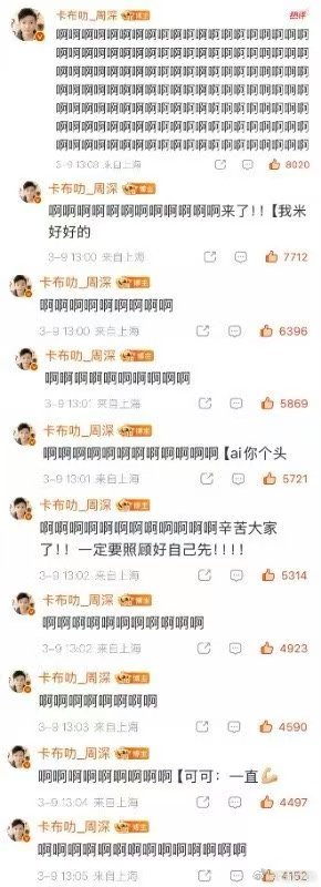 周深发了194个啊 周深连发194个“啊”,评论区秒变尖叫现场!这兴奋劲儿,演唱会怕是要被“啊啊啊”掀翻屋顶!