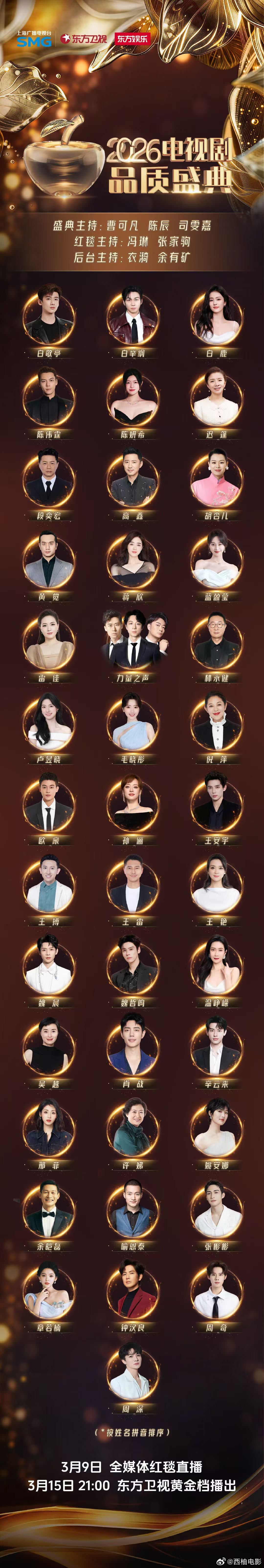 品质盛典全阵容官宣品质盛典全阵容出炉 3月9日,2026电视剧品质盛典全阵容出炉