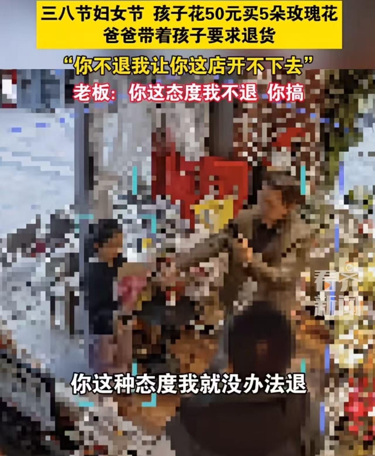 河南,三八妇女节,孩子花50元买5朵玫瑰花,爸爸觉得孩子被坑,带着孩子要求商家退货!爸爸:“你不退我让你这家店开不下去!”老板:“你这态度我不退!”网友:本来是孩子母亲一生美好的记忆,也许这一节日以后都会变成孩子的噩梦! 妇女节,孩子用自己的压岁钱,偷偷给妈妈买了五桶玫瑰花,想给妈妈一个惊喜。 可是爸爸看到后,问女儿这个花多少钱买的? 女儿说10块钱一朵,5朵一共50块钱! 爸爸听后火气“蹭”地就上来了。在他看来:“这花撑死值几块钱?路边野花不要钱!这不是明摆着坑孩子吗?” 于是,爸爸根本不管这花里藏着女儿多少心意,也不管这是送给妈妈的节日礼物。他一把拽过孩子,气势汹汹地杀回花店,要求商家退款。 “把这钱退了!你们这就是坑小孩!” 老板一脸无奈,说: “这孩子都买走很长时间了呀,怎么退?” 爸爸掏出手机对着老板脸就开始拍: “好!今天这事儿咱们就闹大点!你们专门坑小孩子是吧?我让大家看看你们黑心不黑心!” 老板看对方情绪失控,说: “你先报案吧要不?让警察来评理!” “我就问你,退不退?!” 老板也火了: “不退!没办法退!你这种态度,我就是没办法退!” 爸爸怒吼: “你欺负小孩是不是?忽悠小孩是不是?我让你这家店开不下去你信不信?!” 老板硬气回怼: “我不信!随便你怎么搞!” 这下彻底炸锅了。孩子爸爸直接冲到店门口,扯着嗓子大喊:“大家都来看看这家黑店啊!5朵花卖小孩50块钱!抢钱啊这是!” 【网友热议】 “这个爸爸太扫兴了!昨天我五年级的儿子给我和我妈一人买了个小蛋糕还有一个小束的勾的花,我们全家都很高兴啊,我们觉得他很懂事啊,没觉得他乱花钱!” “这是底层人的真实写照。对不那么贫穷的家庭来讲,孩子的孝心比这50块钱重要多了,但对于贫困家庭来讲,这个50块钱就比孝心更重要了,可能50块钱是他们几天的生活费。” “大家都在讨论花贵不贵的问题,为什么没人考虑,这么小的孩子消费50元,是不是应该好好考虑一下,如果是我是店主,我会马上给退了!” “唉!这种男人挣不到钱是应该的,就算是想要回这50元钱,也不能带孩子去呀。” “过节期间,10元一支真不算贵!他看不到孩子对妈妈的心意,也看不到吓坏的孩子,只看到50块…” “我以前就碰到过这种情况,我怕孩子难过,在后面低头不说话,我就直接把钱退给家长了,说孩子对你的孝心无价,花是孩子省吃俭用给你买吧!也是孩子对你的心意,你拿去吧!钱我退你。后面她老公来了,骂了她一顿,非要给我钱,我说不用,几十块钱的事情,你好好安慰孩子,要不然孩子对孩子影响很大。这个家长你看看你身边的孩子,你不考虑以后孩子的成长吗?几十块钱的事情。” 【观点解析】 这50块钱,是孩子省吃俭用攒下的“巨款”,是她对妈妈最纯粹的表达。 而在爸爸眼里,这只是一笔“亏本买卖”,是“智商税”。 他赢了道理,证明了花价虚高,甚至可能真的追回了那50块钱。 但他输掉的,是孩子敢于表达爱的勇气,是家庭里那份难得的温情。 以后孩子再想给家人惊喜时,脑海里浮现的不是妈妈的笑脸,而是爸爸狰狞的面孔和那句“你被坑了”。 这种心理阴影,花多少钱都治不好。 如果觉得花贵了,完全可以事后温和地告诉孩子:“宝贝,你的心意妈妈收到了,特别感动。不过下次我们可以换个更实惠的方式表达爱,比如画幅画。” 而不是当众撒泼,让孩子在惊恐和羞耻中看着父亲发疯。 记住:家不是讲理的地方,是讲爱的地方。别让所谓的“聪明”,毁了你和孩子之间最珍贵的信任。 那5朵玫瑰枯萎了可以再买,但孩子那颗热乎乎的心要是凉了,可能就再也捂不热了。