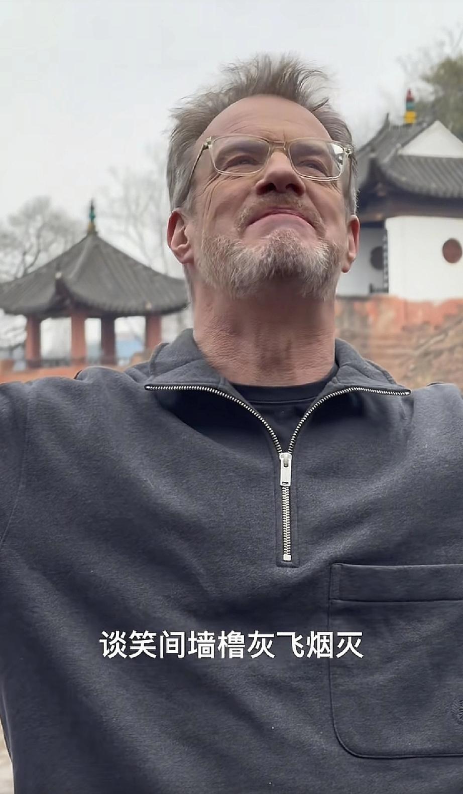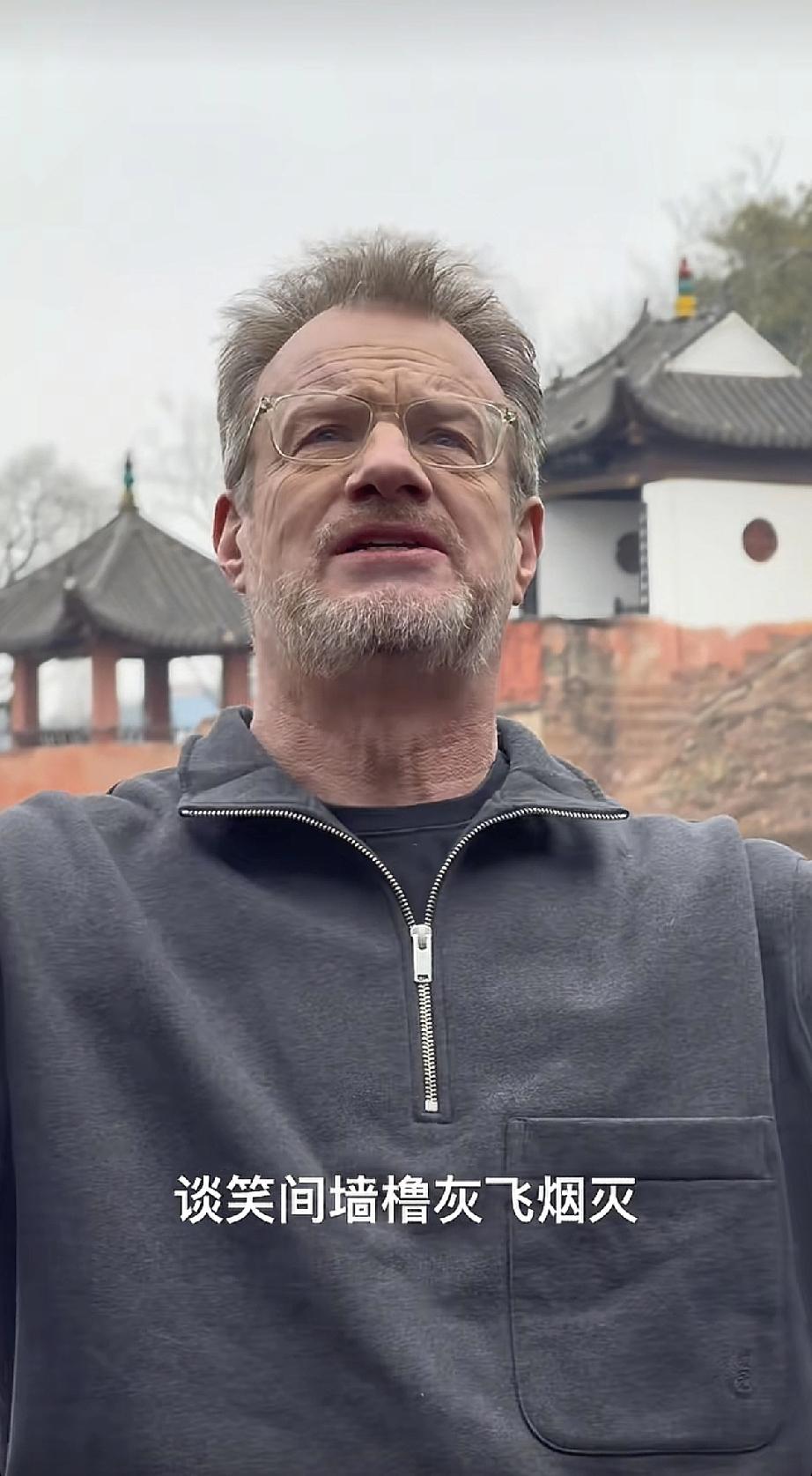大山究竟发生了什么?怎么会老成这样? 近日,加拿大籍相声演员大山回到中国的湖北黄冈,在东坡赤壁跟前慷慨激昂地吟诵了一首《念奴娇.赤壁怀古》,纪念苏东坡诞辰989周年。 镜头中的大山变化太大了,差点没认出来,他穿着一件破破烂烂的质量不是很好的黑色拉链外套,头发、胡子、眉毛花白,满脸的褶子。 尤其笑的时候,他特别像80多岁的老大爷,实际上他是1965年出生的,今年61岁,比真实年龄看着老多了。 大山的普通话依然很标准,尤其在吟诵诗词时,抑扬顿挫和中国人简直一模一样,不得不说,他早些年勤奋学习中文,学习中国的传统文化还是有用的。 以至于他现在回到中国,就像回到自己的第二故乡一样,说中文就和说母语一样,很轻松。 可惜他的脸老得不能看,怎么会变成这样呢?好奇怪,网友想问,他到底发生了什么? 大山作为我国90年代火起来的外籍相声演员,曾经特别有名,他还拜著名的相声表演艺术家姜昆为师,二人在台上合作相声时,大山戴一副眼镜文质彬彬,是特别帅气的小伙子。 后面,大山在中国继续发展了一段时间就回到加拿大了,原因是他认为要突破重围,回到加拿大继续做中国传统文化传播的工作,还可以陪伴妻子和两个孩子。 大山与重庆籍的美女甘霖结婚,婚后育有一儿一女,两个孩子在加拿大生活和学习,大山后面回到加拿大,也是为了陪伴他们。 如今大山还经常回到中国发展事业,可是已经火不起来了,不像以前那么有名了,只能客串一下。 不知道他如今收入怎样?感觉大不如从前,才会这么憔悴吧,以至于1965年出生的他也就61岁,满脸的络腮胡都是白的,特别显老,像八九十岁的老大爷,真是让人唏嘘。