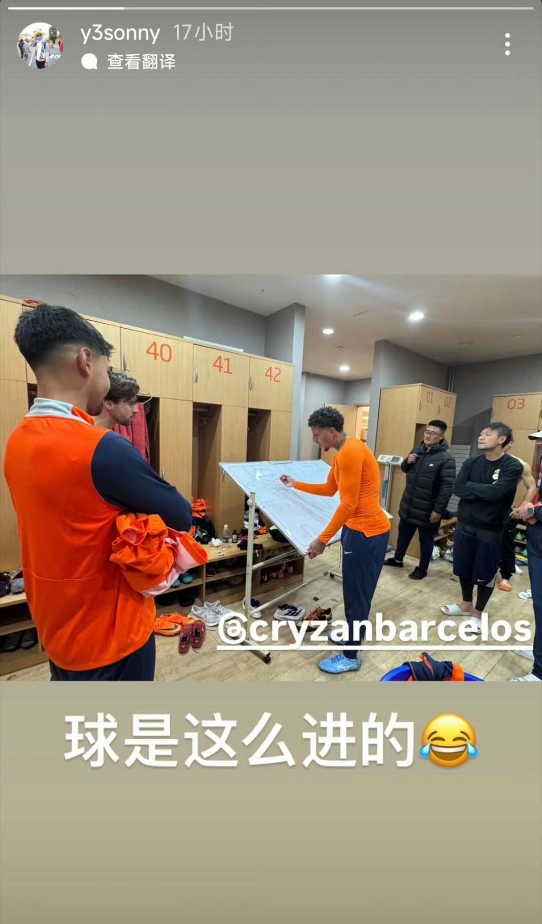 刘洋更新社媒:球是这么进的! 图片中显示克雷桑在讲解技战术,大家都听的非常认真。 韩鹏上任后,泰山队成绩能逐渐稳定向好,除了稳定团结外,技战术方面,最大的功劳就是捋顺了克雷桑、瓦科、泽卡的场上关系,让克雷桑更多时候后撤,前场留瓦科和泽卡。 我们看到现在泰山队内部非常团结,队内气氛非常好,希望下一场京鲁大战,能够获胜,积分清零。 山东泰山队