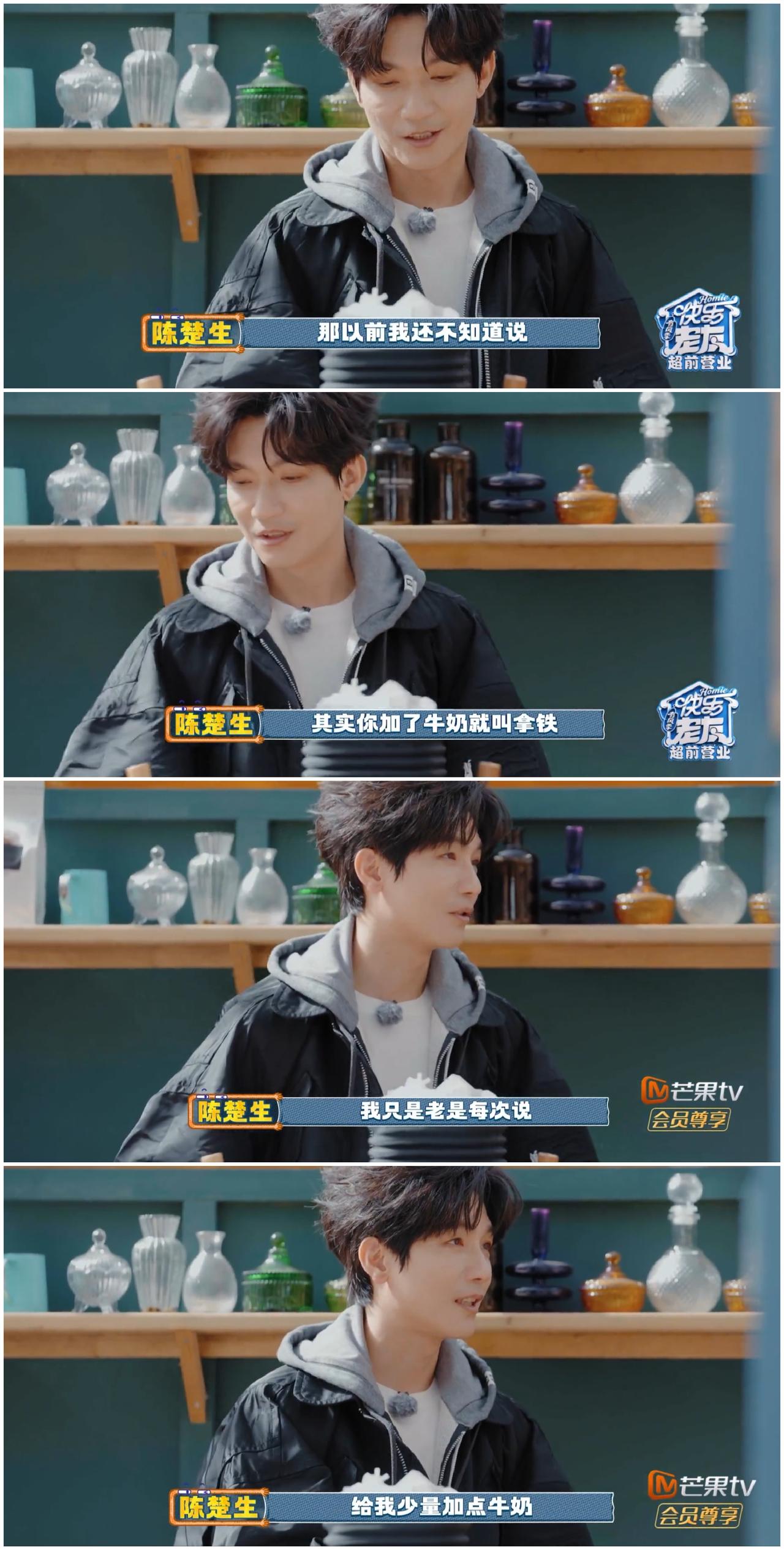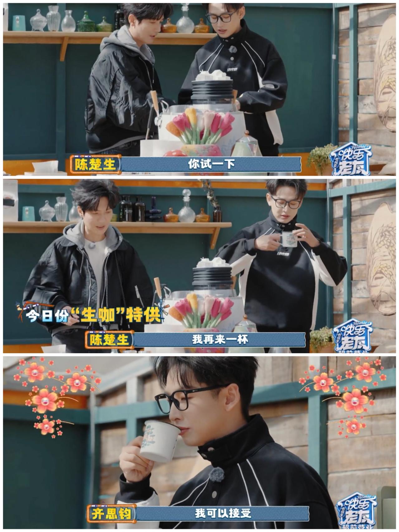 苏醒他们的这个举动, 让陈楚生情何以堪, 太尴尬了。 陈楚生在丽江做节目, 节目组给陈楚生安排了一个 专门做咖啡地方 名叫“荒芜咖啡”。 苏醒,陆虎偏偏要到外面 给嘉宾买咖啡, 由此可见陈楚生的咖啡技艺 真的有待提高呀。 陈楚生强调以前不知道 加了牛奶的咖啡就叫拿铁, 每次买咖啡时 都跟服务员说 少量加点牛奶。 陈楚生给齐思钧泡了一杯咖啡, 齐思钧给出的评价不是“好喝”, 而是“可以接受” 就知道陈楚生泡咖啡的手艺一般, 导致苏醒他们要到外面买咖啡。 节目专门给陈楚生布置一个冲泡咖啡的地方, 还以为他的咖啡冲泡技术有多高呢 现在才知道陈楚生在这方面还需要提高, 以前都被兄弟们的捧场误导了。