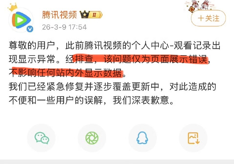 腾讯视频回应《逐玉》的数据异常“仅为页面展示错误,不影响任何站内外显示数据”。《逐玉》由张凌赫田曦薇主演,最近几乎天天热搜!