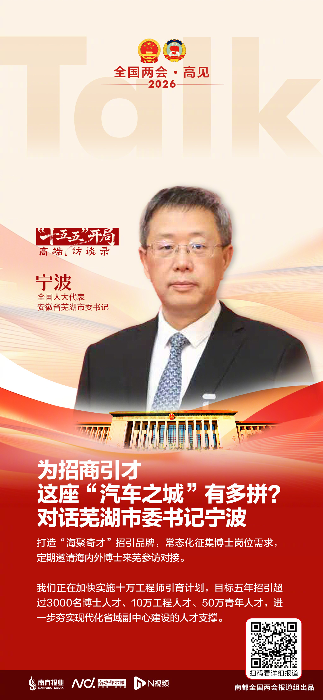 3月4日,全国两会拉开序幕,全国人大代表宁波正式进入 “两会时间”。其间,宁波接受了南都记者的书面采访,介绍了芜湖汽车产业发展的最新情况,以及将如何打出人才引育留用的“组合拳”。