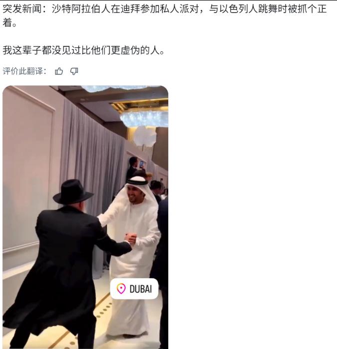 阿拉伯人一觉醒来天塌了!今天的社交媒体都在疯传,阿联酋官员(贴文指出是沙特,核实后确定为阿联酋)和以色列官员在迪拜的私人派对上一起跳舞。 这种看似矛盾的行为背后,其实藏着阿拉伯世界内部长期存在的利益纠葛与立场撕裂,不是简单的“虚伪”二字能概括,但从普通民众的视角来看,这种双面操作确实让人难以接受。 2020年,在美国的撮合下,两边就签了个《亚伯拉罕协议》,正式握手言和了。从那以后,关系就跟坐火箭似的往上蹿。为啥?因为大家都有好处拿啊。 对阿联酋这些海湾土豪来说,他们心里头最大的疙瘩不是以色列,而是隔壁的伊朗。伊朗势力越来越大,搞得他们晚上睡觉都不踏实。 而以色列呢,跟伊朗那是死对头,敌人的敌人不就是朋友嘛。所以两边在安全上是一拍即合,暗地里眉来眼去好多年了,现在不过是把桌子底下的交情摆到台面上来。 阿联酋有钱,但光靠卖石油也不是长久之计,他们天天琢磨着怎么搞经济转型,弄点高科技、金融、旅游这些新花样。巧了,以色列别的不行,搞创新、玩技术那是一把好手。农业科技、人工智能、医疗,样样都厉害。 阿联酋一看,这不正是我需要的吗?于是两边就勾搭上了,贸易越做越大,还签了自贸协定,绝大部分商品都不收关税了。以色列那边也乐坏了,以前在中东像个“孤儿”,现在终于有阿拉伯兄弟愿意跟他做生意了,还能买到稳定的石油,简直是双赢。 所以你看,官员们在一起跳个舞算什么,背后不知道签了多少个大单子呢。 那美国在这中间扮演啥角色?就是个拉皮条的。特朗普当时为了给自己竞选连任脸上贴金,拼命撮合这事。美国自己在中东不想多管闲事了,就想着让底下的小弟们自己抱团,它好省点力气。阿联酋和以色列建交,正好符合美国“离岸平衡”的那套算盘。 可是问题就出在这儿。政府高层算盘打得噼啪响,老百姓心里可不这么想。对于普通的阿拉伯人,尤其是那些年纪大一点的,巴勒斯坦问题那是心里头一道过不去的坎儿。 几十年的冲突,电视里天天放的新闻,那种同情巴勒斯坦、反感以色列的情绪是刻在骨子里的。你现在突然告诉我,咱们的官员跟以色列人勾肩搭背、在派对上开心跳舞?这感情上一下子哪接受得了。 所以你说这事儿矛盾吗?太矛盾了。上头的人看的是实实在在的国家利益和安全算计,什么对抗伊朗、发展经济、引进技术,都是冷冰冰的现实主义。下头的老百姓感受的是几十年积累下来的民族情感和宗教情绪,热乎乎的。 这种撕裂不是一天两天了。巴勒斯坦问题在这些海湾国家的统治者眼里,早就从“核心事业”慢慢变成了可以讨价还价的“外交筹码”,甚至有时候觉得是个“麻烦”。但对街头巷议的民众来说,支持巴勒斯坦兄弟那是一种“政治正确”,是阿拉伯人基本的道义。 结果就是现在这副光景:政府大楼里,官员们和以色列人谈笑风生,签着价值百亿的合同,开着直飞航班,搞着联合军演。私人别墅里,还能一起开派对跳跳舞。可另一边,社交媒体上炸开了锅,老百姓觉得难以置信,甚至感到愤怒。 这种“台上握手,台下踢脚;台上跳舞,台下骂娘”的局面,就是阿拉伯世界当下最真实的写照。不是他们人格分裂,而是国家和民众的诉求,在现实利益和历史情感的拉扯下,早就走向了不同的方向。