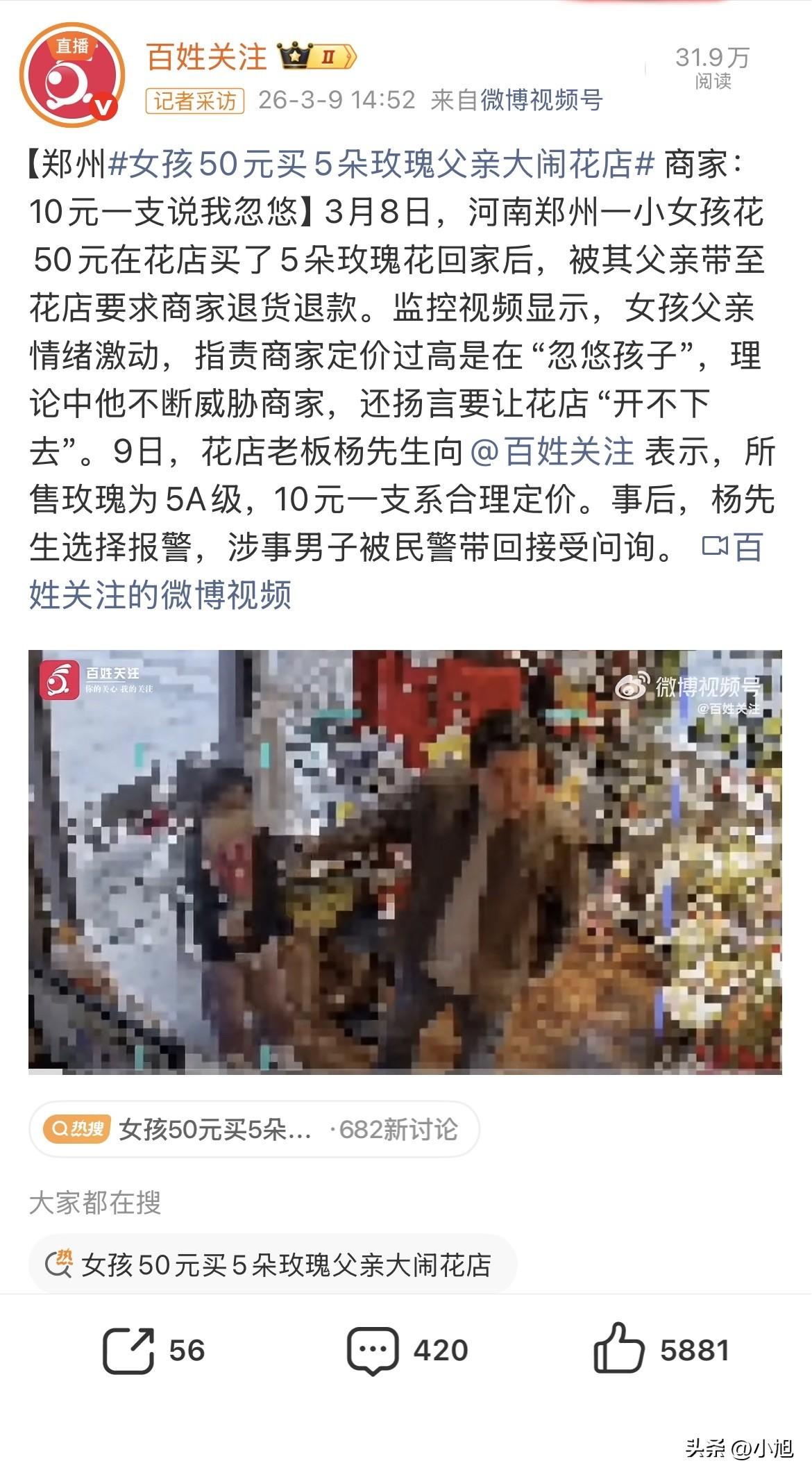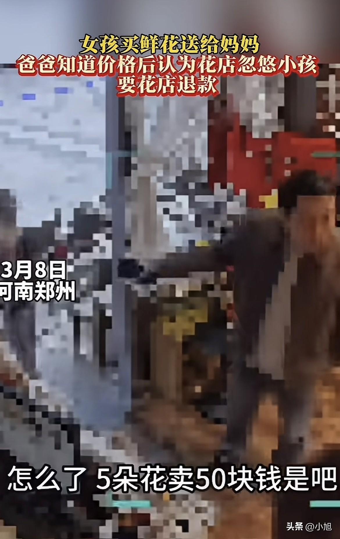 家3月8号傍晚6点多,郑州一个花店里来了个小女孩,也就8、9岁的样子。她在店里挑了半天,最后用自己攒的零花钱,买了5支玫瑰,正好50块。老板还特意给包得漂漂亮亮的,孩子满脸高兴地走了,说是要送给妈妈当节日礼物。 结果一个多小时后,这孩子又被拽回了花店。这次不是来买花的,是来退花的。她爸一脸怒气冲进来,进门就喊:“5朵花卖50?赶紧退了,这不是忽悠小孩吗!” 花店老板杨先生当时就懵了,解释说这是A级玫瑰,过节这几天市场价就是10块钱一支,童叟无欺。而且孩子都买走那么久了,花也拿出来过,这咋退? 这位爸爸根本听不进去,直接掏出手机对着老板的脸就开始拍,嘴里还放着狠话:“不退是吧?我今天就让这事闹大,我让你这家店开不下去,你信不信?” 老板看他这架势,也火了,让他直接报警。这位爸爸更来劲了,一把夺过孩子手里那束花,冲到店门口就扯着嗓子喊:“大家都来看看,这家黑店,5朵花骗小孩50块钱!” 整个过程,那个小女孩就站在旁边,手不知道该放哪儿,身体都在发抖,眼睁睁看着自己爸爸因为那束花,像个失控的陌生人一样大吼大叫。 后来记者去了解过,妇女节那天,郑州那边包好的玫瑰确实就是这个价,10块钱一支是正常行情,不算坑人。有律师也说了,8岁孩子用零花钱买花送妈妈,这买卖完全合法有效。反倒是这位父亲,上门威胁人家做生意,可能已经违法了。 很多人可能不明白,这位爸爸咋这么大火气?有网友一句话道破了天机:对有些家庭来说,50块钱可能就是一天的菜钱,甚至更多。在他眼里,这几朵花几天就谢了,还不如买斤肉实在。他不是不爱孩子,他是被生活压得太久,眼里只剩下了性价比,再也看不见孩子心里那份纯粹的爱了。 可他忘了,他当着那么多人的面,把孩子最珍视的心意踩在脚下,这给孩子留下的,哪里是50块钱的阴影?这孩子以后过节,再想给妈妈买个啥,脑子里第一个蹦出来的,恐怕就是这一天父亲那张愤怒的脸。 50块钱,花的是一时,伤的可能是这孩子一辈子表达爱的勇气。你觉得,这位爸爸从派出所出来之后,能想明白这个理儿吗?