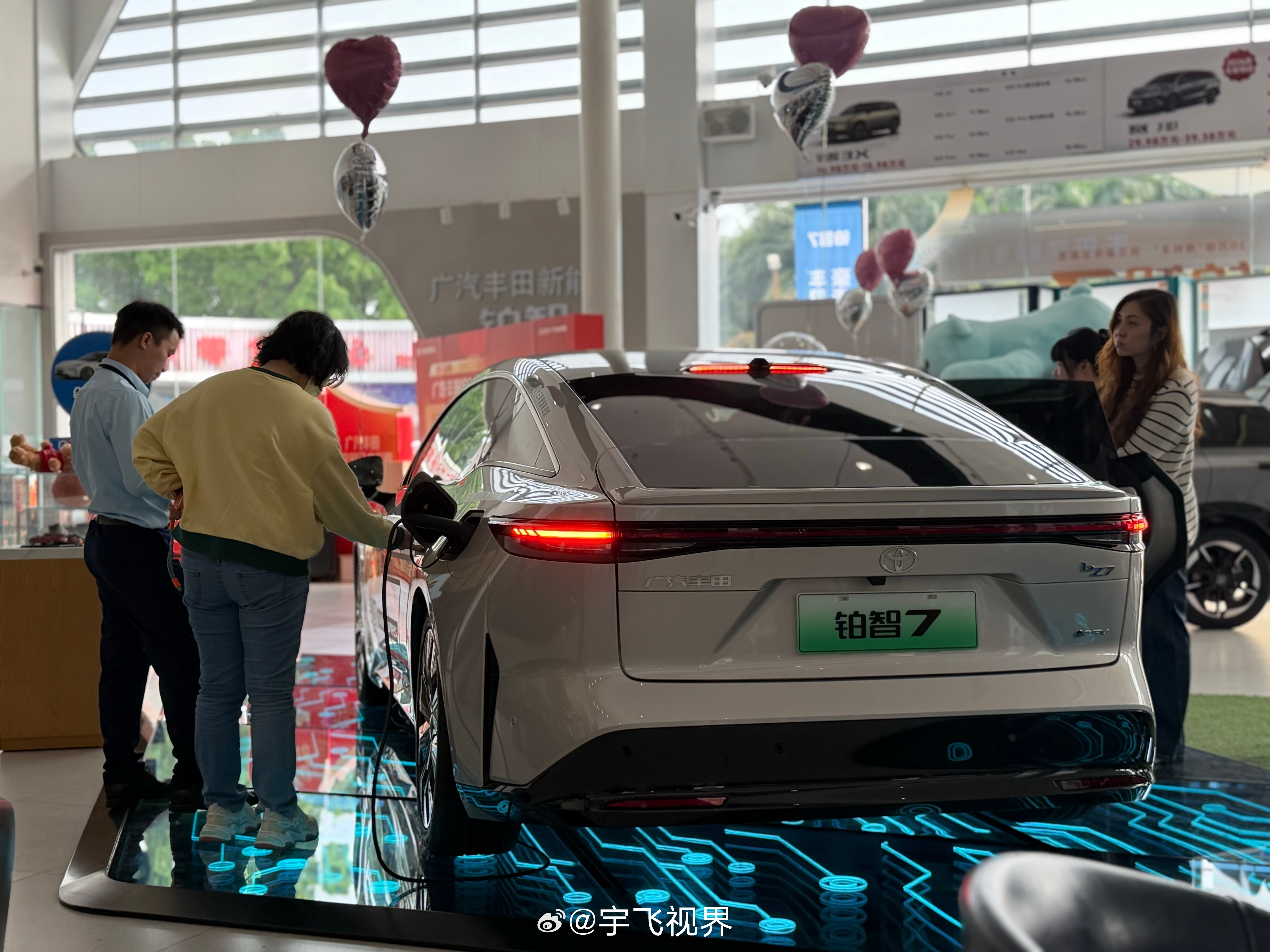 丰田铂智7实车全面到店上周广汽丰田铂智7刚开预售,这周实车就铺到店里了。丰田铂智7预售权益价15.68万起光看配置表你可能没感觉,但当你看到实车,5米13的车长,3米02的轴距,妥妥的D级车身材。那个溜背造型,无框车门,内饰用的NAPPA真皮、50年树龄的白栓木饰板。你再坐进去,副驾是带腿托的零重力座椅,四座都有通风加热按摩。这种实车的质感和气场,跟你光看价格数字,感受是完全不一样的。