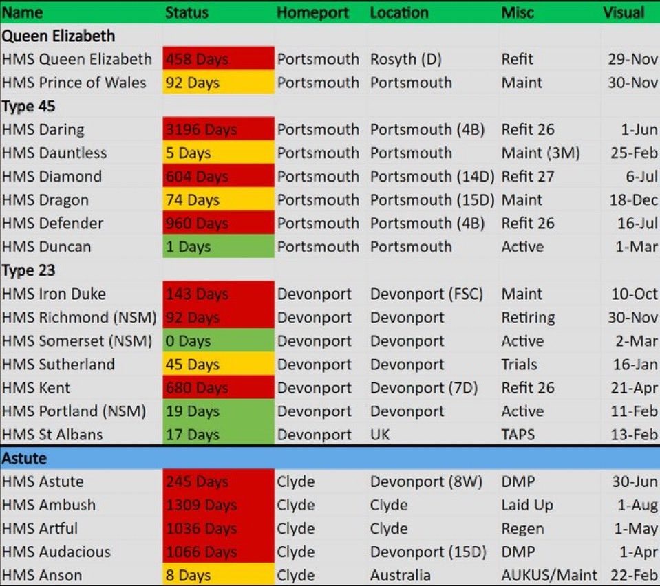 皇家海军目前拥有3名上将,10名中将,25名少将,但只有1艘驱逐舰+2艘护卫舰处于可用状态