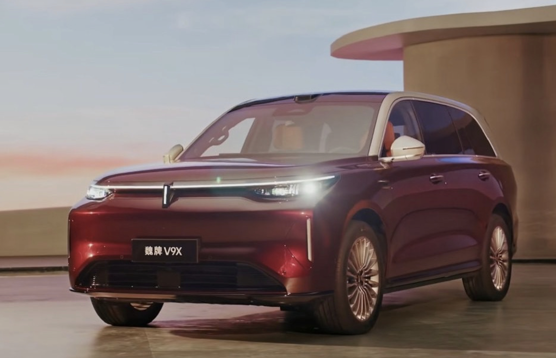 车身尺寸达5299mm、轴距3150mm、2+2+2布局、归元S平台、800V架构、6C超充电池、超级Hi4 2.0T插混系统、后轮转向、双VLA大模型、中控/副驾双17.3英寸联屏、21.4英寸4K后排娱乐屏、31个稀土强磁扬声器、7L冷暖双用冰箱、标配电动侧踏板、一二三排车窗遮阳帘、前排座椅三挡加热通风+按摩、二排座椅可旋转、三排座椅加热。这样一辆带着东方建筑美学的6座插混大型SUV,大伙觉得怎么样?魏牌V9X代言人魏建军首秀直播