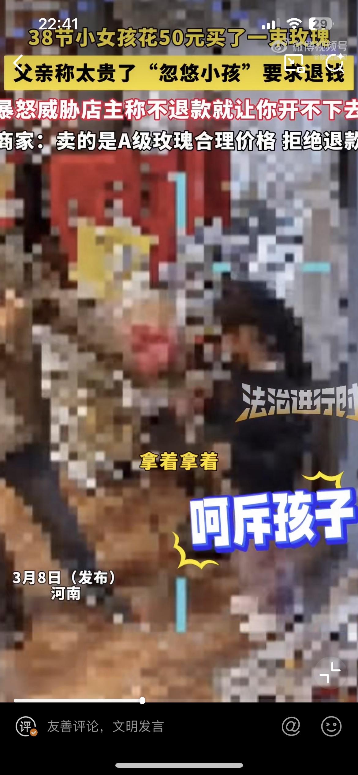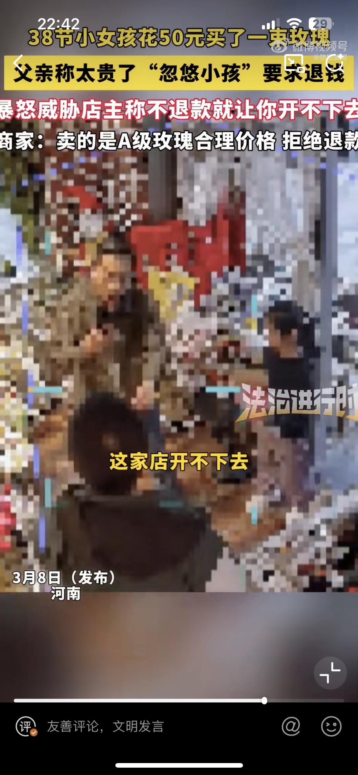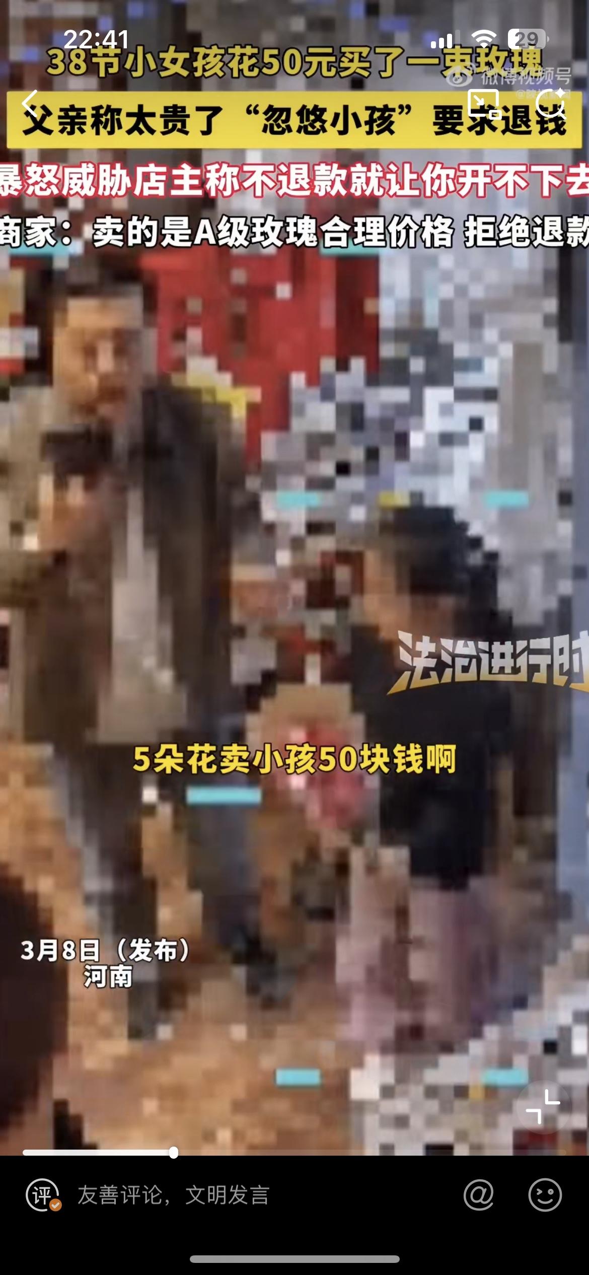 郑州小女孩花 50 块买玫瑰送给妈妈,爸爸嫌贵,找到花店要退货。花店硬刚说这是 A 级玫瑰,就是这个价,没有忽悠小女孩。父亲威胁说,你不退,信不信我让你开不成店?作为一个父亲,真的是蛮横又无知,直接浇灭了女儿的一片孝心。让她无所适从,不知道花钱给妈妈送花到底是对还是不对。也许是过惯了穷日子,一分钱掰成两半花,对于女儿花 50 块钱就觉得这是一笔巨款,是在乱花钱,是在打破家庭的经济平衡。