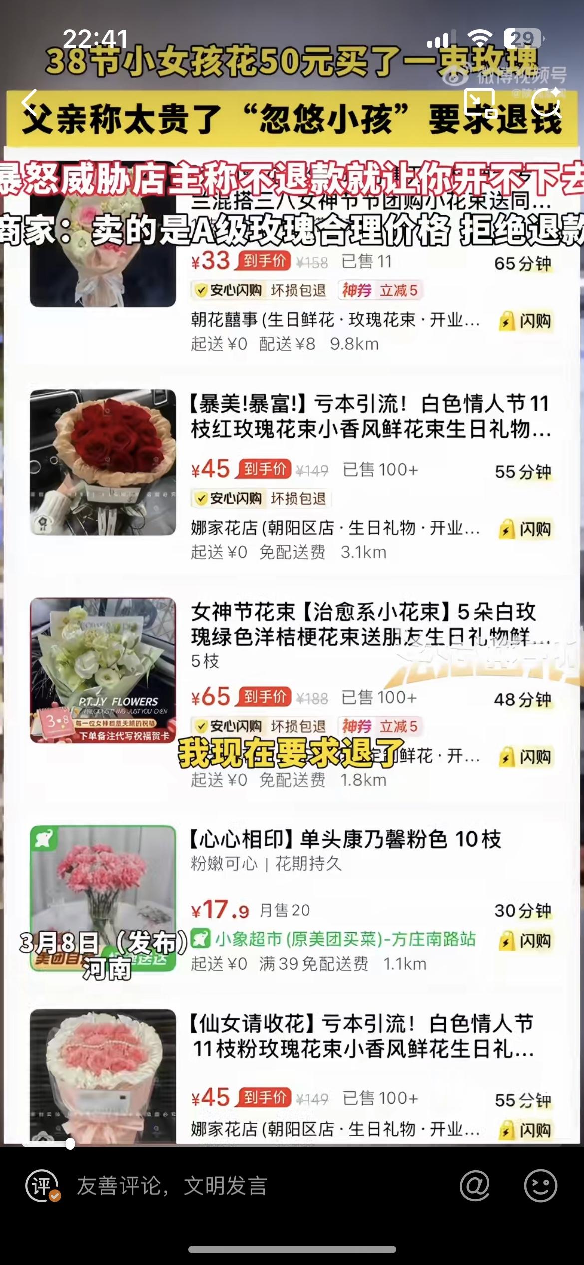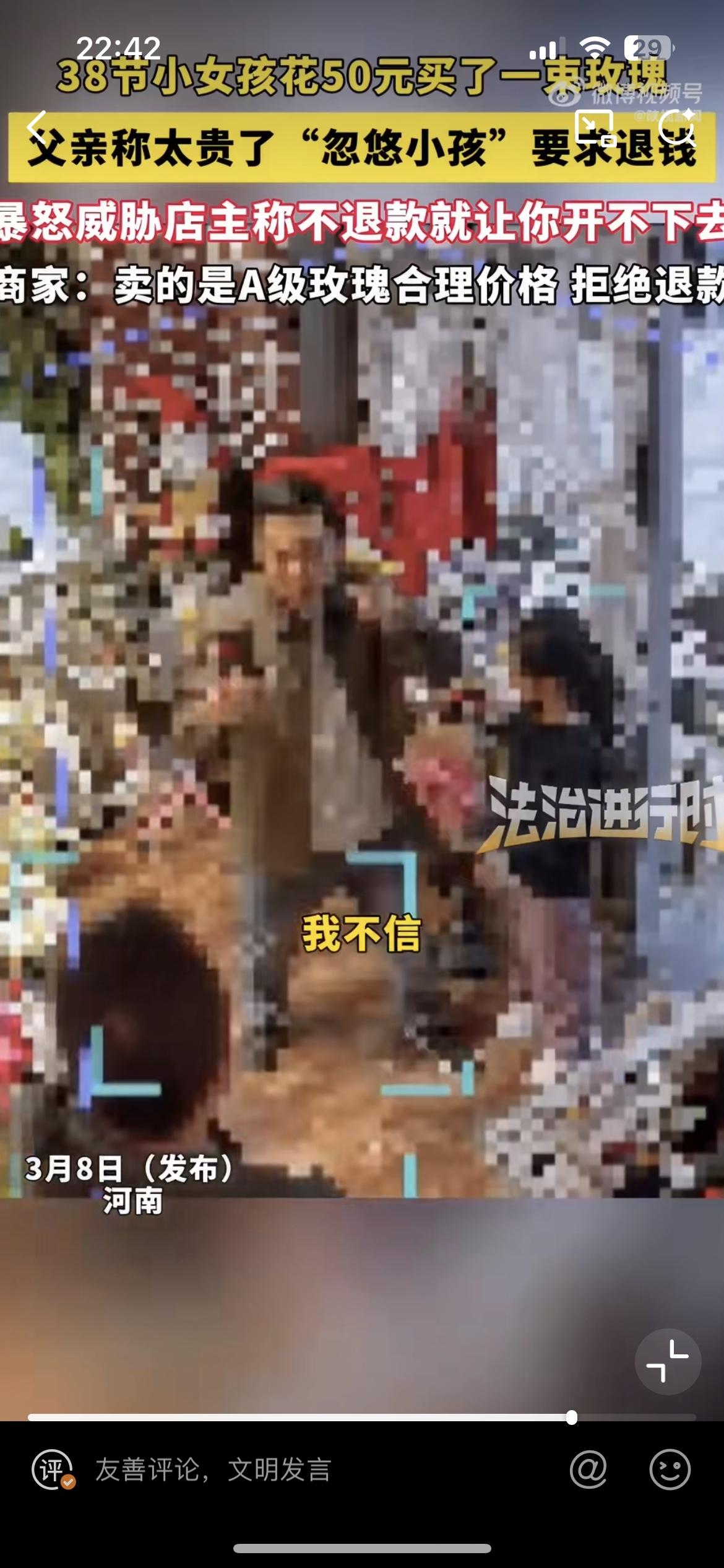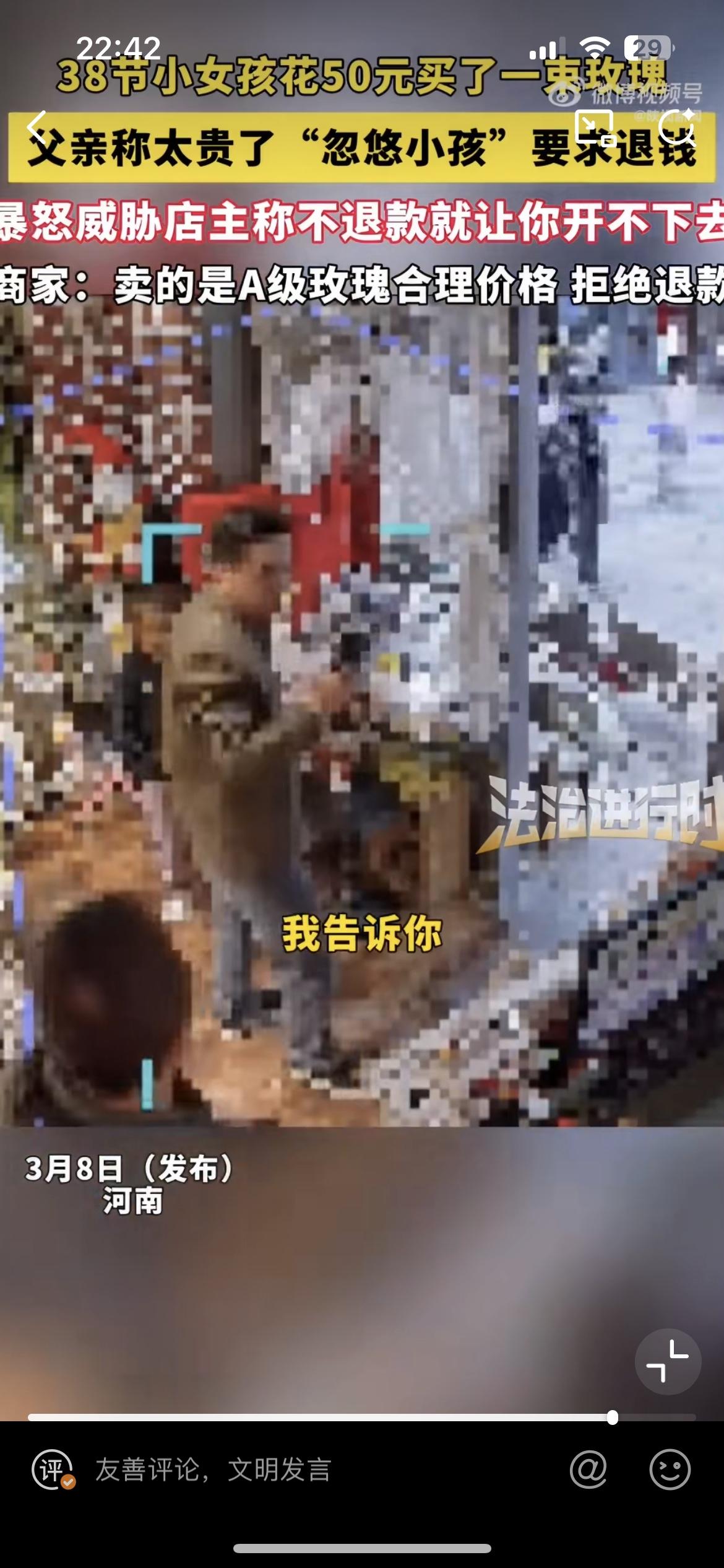郑州小女孩花 50 块买玫瑰送给妈妈,爸爸嫌贵,找到花店要退货。花店硬刚说这是 A 级玫瑰,就是这个价,没有忽悠小女孩。父亲威胁说,你不退,信不信我让你开不成店?作为一个父亲,真的是蛮横又无知,直接浇灭了女儿的一片孝心。让她无所适从,不知道花钱给妈妈送花到底是对还是不对。也许是过惯了穷日子,一分钱掰成两半花,对于女儿花 50 块钱就觉得这是一笔巨款,是在乱花钱,是在打破家庭的经济平衡。