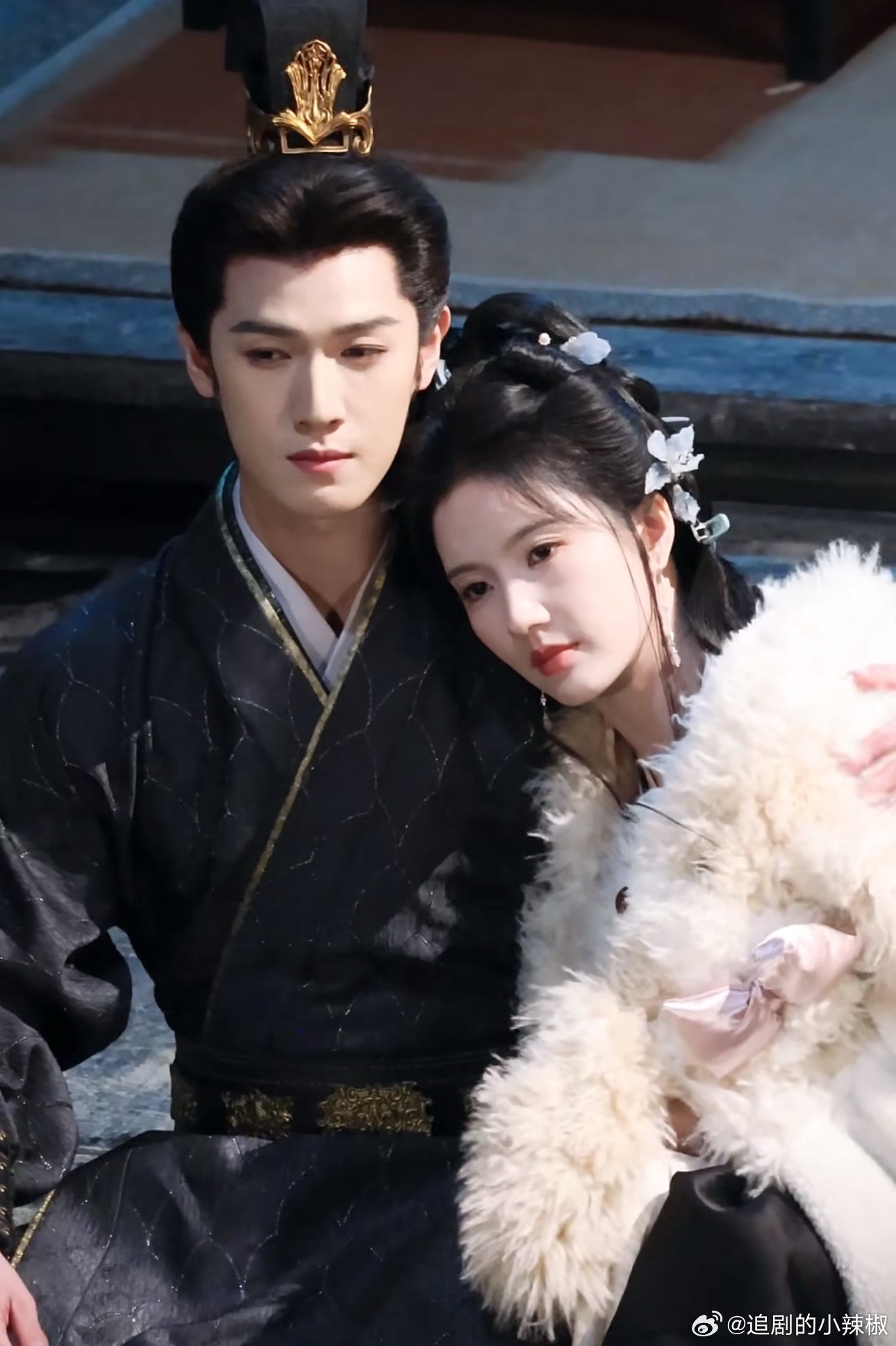 李昀锐、刘些宁新剧《归良辰》路透,两人就这么萌萌的依偎着