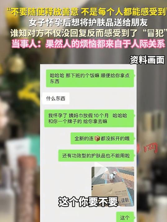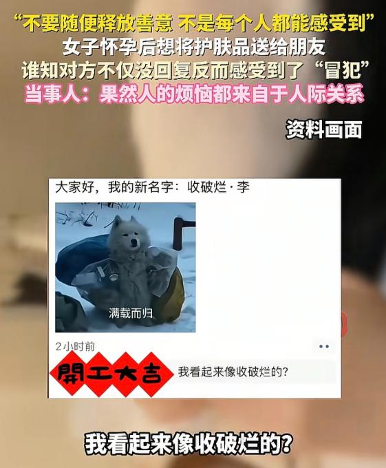 “敏感还是玻璃心?”辽宁,女子怀孕了,给朋友发信息,要把未使用的护肤品、卫生巾送给她,可朋友一直不回消息,女子却在15分钟后,看到朋友发了一条朋友圈配文:我看起来像收破烂的?女子瞬间憋闷:唉!果然人的烦恼都来自于人际关系! 她没多想,随手给朋友发了条信息,大概意思就是自己怀孕用不了这些东西,都是好的,要是朋友不嫌弃,就拿去用,省得放着浪费。发完信息,她就放下手机去忙别的,想着朋友看到了总会回一句,哪怕是拒绝也没关系。 可左等右等,朋友那边一点动静都没有,既不回消息,也没给个任何回应。她心里稍微有点犯嘀咕,难道是朋友没看到?还是觉得这些东西不好,不好意思拒绝?也就过了15分钟,她闲着没事刷朋友圈,没想到一眼就看到了朋友刚发的动态,配文就一句话:“我看起来像收破烂的?”,没有配图,也没有多余的文字,可她心里一下子就咯噔一下,浑身都不自在。 她不用想也知道,朋友这条朋友圈,大概率就是冲她来的。毕竟自己刚发完送东西的信息,朋友不回,反而立马发了这样一条动态,时间点卡得刚刚好。她本来没觉得自己做了什么错事,好心分享闲置,没想着要朋友的回报,甚至还特意挑了没怎么用、成色好的东西,就怕朋友嫌弃,结果换来这么一句阴阳怪气的话。 女子没敢去问朋友,也没再发任何消息,只是一个人憋闷着,心里又委屈又无奈,最后忍不住叹口气,感慨一句,果然人的烦恼,大多都来自于人际关系。其实她也纠结过,自己是不是太敏感了,说不定朋友只是随手发的,和自己没关系?可转念一想,哪有这么巧合的事,偏偏在自己发完信息15分钟后,发这样一句针对性极强的话。 这事说大不大,说小不小,却特别戳人。女子的好心,错就错在没提前问一句朋友要不要,就想当然地把自己认为没用、但对别人可能有用的东西送出去。她觉得是节约不浪费,是真心为朋友着想,可在朋友眼里,或许就觉得是别人不要的“破烂”,送给自己就是看不起人,觉得自己缺这些东西。 现实生活里,这样的事其实特别多。就像有人清理家里的闲置,觉得扔了可惜,送给亲戚朋友,本是一片好心,可往往会被人误解。有的人心安理得收下,背后却吐槽是别人不要的垃圾;有的人直接拒绝,弄得双方都尴尬;还有的人像这位朋友一样,不直接回应,反而用阴阳怪气的方式表达不满。 有人说女子太玻璃心,朋友可能只是随口发的,没必要往自己身上揽;也有人说朋友太过分,就算不想要,也该回一句委婉拒绝,没必要用这种方式伤人。其实说到底,这不是敏感和玻璃心的问题,也不是谁故意刁难谁,而是人与人之间的认知差异,还有边界感的缺失。 女子的善意是真的,但她忽略了一点,每个人的想法不一样,你觉得是宝贝,别人可能觉得是累赘;你觉得是好心,别人可能觉得是冒犯。现在不像以前物质匮乏的年代,不是所有闲置都有人愿意要,尤其是护肤品、卫生巾这种比较私人的东西,就算是全新的,也有人会介意是别人送的,觉得不如自己买的放心。 反观那位朋友,就算真的不想要,不想被当成“收破烂的”,也有更妥当的方式。可以回一句“谢谢啦,我这边还有很多,用不上,你留着或者送给别人吧”,既给了对方面子,也表达了自己的态度,没必要用发朋友圈阴阳怪气的方式,既伤了朋友的心,也显得自己格局太小。 还有很多类似的情况,有人送闲置衣服被吐槽,有人送土特产被嫌弃,到最后,好心变成了驴肝肺,朋友之间也闹得不愉快。其实不是善意本身有错,而是我们在表达善意的时候,忽略了对方的感受和边界。真正的善意,不是“我觉得你需要”,而是“你需要,我愿意给”,提前询问,尊重对方的选择,才是最基本的礼貌。 女子最后那句感慨,说出了很多人的心声。人际关系之所以让人烦恼,就是因为每个人的想法、认知、底线都不一样,你永远不知道自己的一句话、一个举动,会被别人解读成什么样子。有时候,你真心待人,却未必能换来真心;你一片好心,却可能被误解成别有用心。 但这并不意味着我们要收起自己的善意,只是我们要学会聪明地表达善意,学会把握边界感。闲置不用的东西,与其硬送给别人,不如捐给公益平台,或者挂在二手平台转让,既不浪费,也不会引发不必要的矛盾。和朋友相处,真诚很重要,但尊重和边界感更重要,不勉强别人,也不委屈自己,这样的关系才能长久。 说到底,这件事没有绝对的对错,女子没错,朋友也未必是故意伤人,只是双方站的角度不一样,认知不一样。可就是这样一件小事,却让我们看清了人际关系里的真相:善意需要被尊重,也需要找对方式;相处需要真诚,更需要边界感。 最后想问一句,如果你是这位女子,发完送东西的信息,看到朋友这样的朋友圈,你会怎么做?如果你是这位朋友,不想要别人送的闲置,你会直接拒绝还是用这种方式表达不满? 其实很多时候,一句委婉的拒绝,一次真诚的沟通,就能避免很多不必要的烦恼。