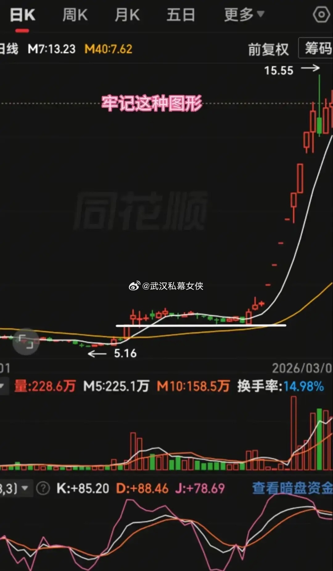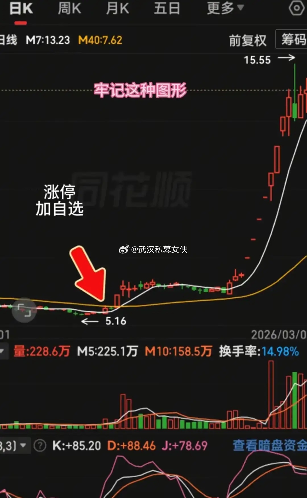 1. 涨停突破:低位长期震荡后放量涨停(量超5/10日均)、突破前压、封死涨停,7日上穿40日线成金叉,加自选跟踪。2. 横盘不破:涨停后3-5天横盘,股价在涨停阳线实体上/回踩不破开盘价,量缩至涨停日50%以下,7日线向上,确认洗盘。3. 放量突破:横盘3-5天后放量大阳(量增30%+)突破横盘高点,站稳上沿、7日线向上,换手5%-15%时介入。核心:涨停定趋势,横盘辨洗盘,突破启主升。需结合板块/大盘,严控风险。(风险提示:仅个人观点,不构成投资建议,股市有风险。)