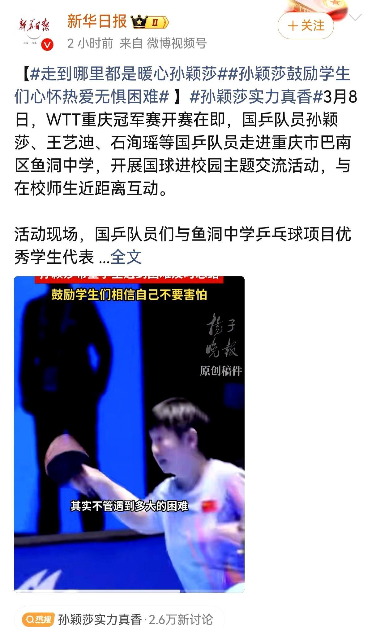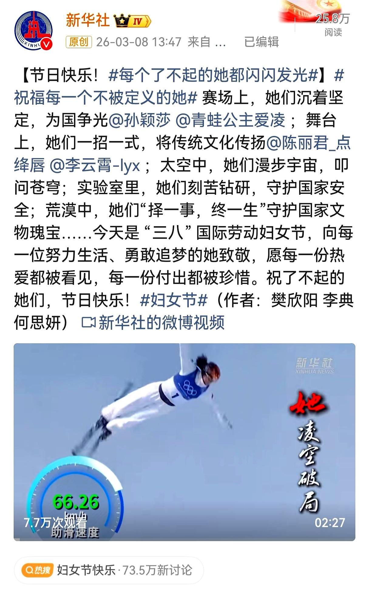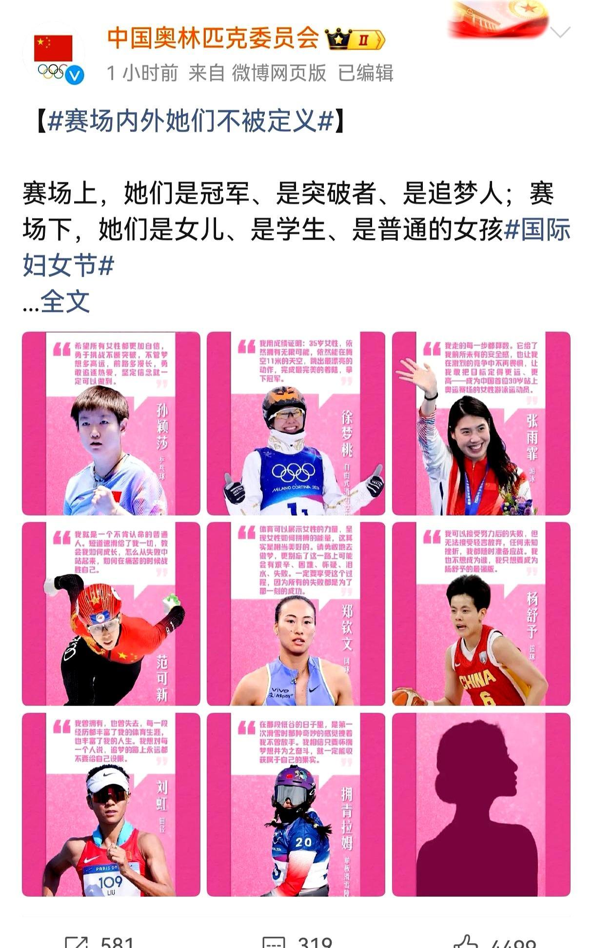 孙颖莎今天在妇女节说选强大不选被爱,直接刷爆了整个体育圈。 中国奥委会专门发了主题海报,说女运动员场上是冲金的勇士,场下是爱闹的普通女孩,新华社也挨个致敬了赛场、科研、航天各个领域的女性。 孙颖莎现在稳坐女乒世界第一,积分11600,刚卫冕了新加坡大满贯女单冠军,手上的老茧磨了一层又一层。 女孩从来不用活成标准答案,你可以身披战袍夺金,也可以扎着马尾撒娇,你远比你想象的更强大。