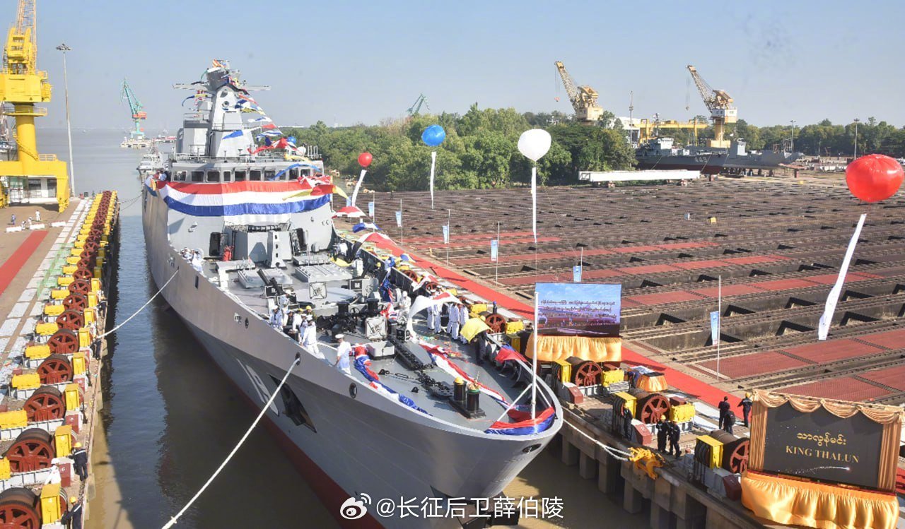 排水量3500吨,配备垂直发射系统的护卫舰"国王塔伦"号已于昨日正式加入缅甸海军服役。该舰装备有HQ-16舰空导弹,C-802A反舰导弹,730型近程防御武器系统以及SR2410C雷达。该舰的加入显著提升了缅甸现代化海军的作战能力。海洋强国路