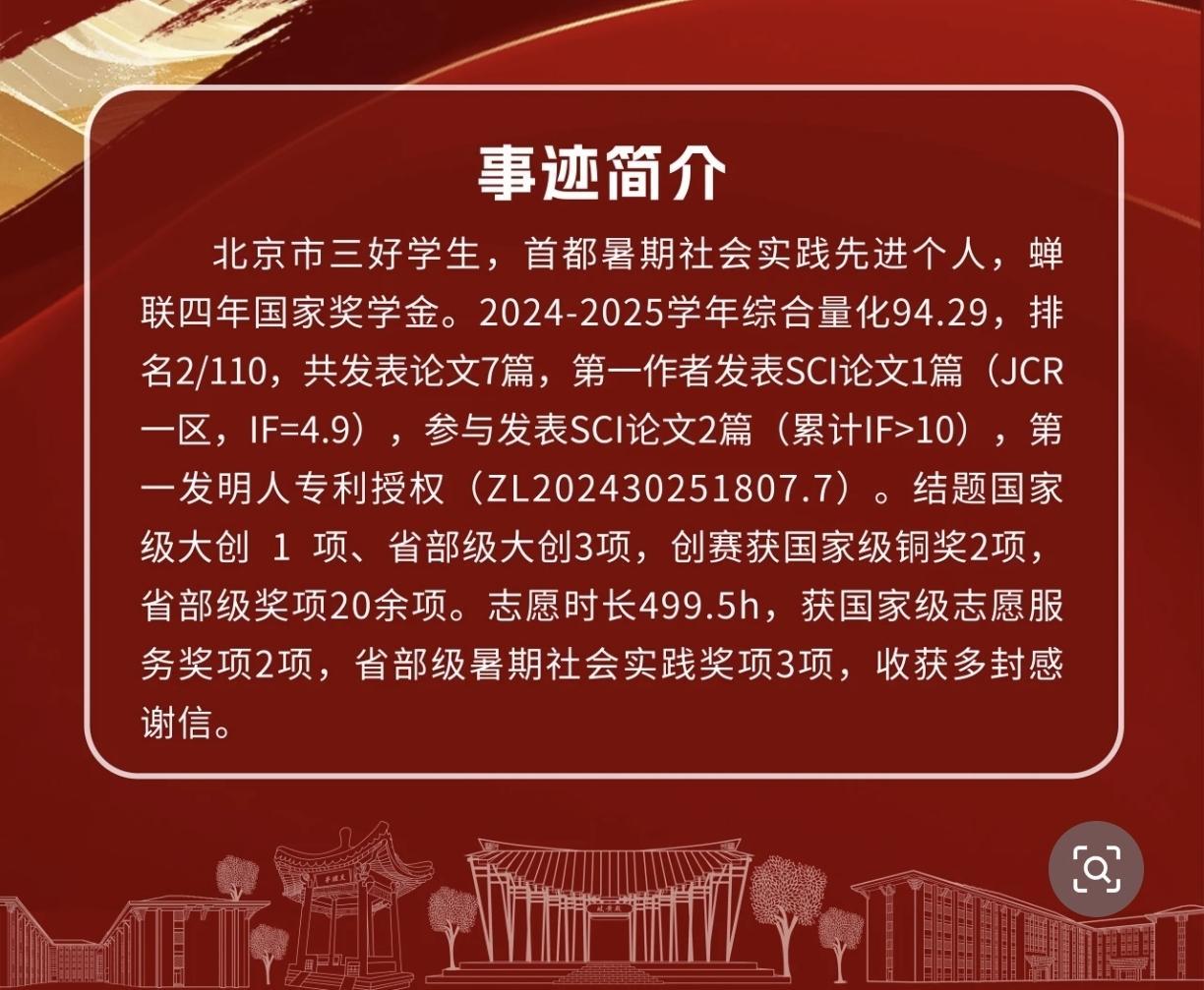 杨倩雯,北京中医药大学2021级本科生,一眼望去便是美女学霸,一位知性优雅的女大学生。本科阶段就能发表JCR一区的论文,实在厉害,必须点赞!关键这还不是最牛的,人家可是蝉联四年国家奖学金啊!这简直是拿国奖犹如探囊取物! 各位看官,你身边也有这样的牛人吗?